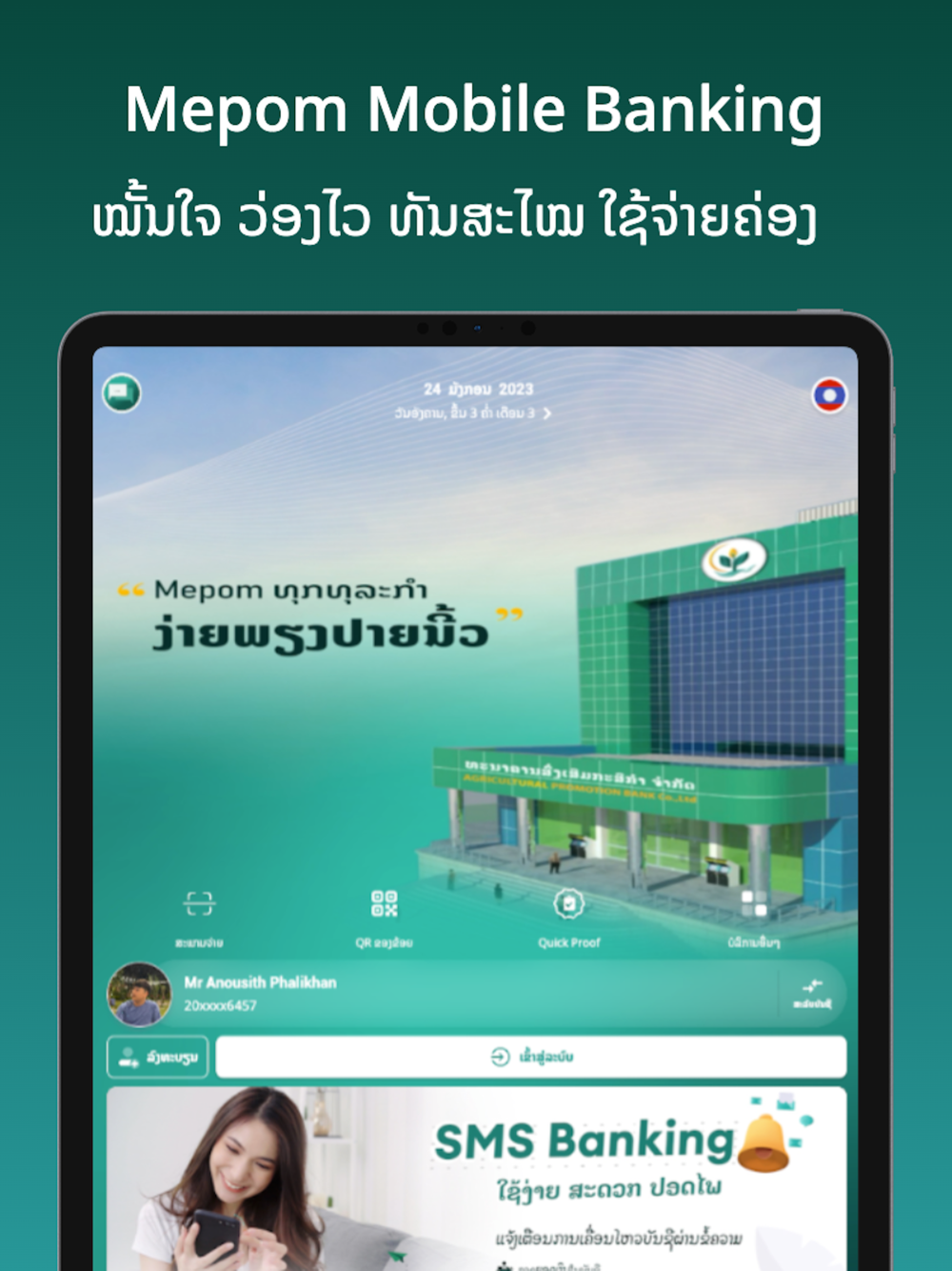 APB Mepom Mobile Banking is the Agriculture Promotion Bank’s service through mobile phone creating convenience and confidence to customers whenever processing financial transactions using Smart Phone and Tablet via Internet by themselves. Customers are not required to travel to the Bank Head Office, branches or service units. It is an advanced, convenient, fast, safe and simply system.