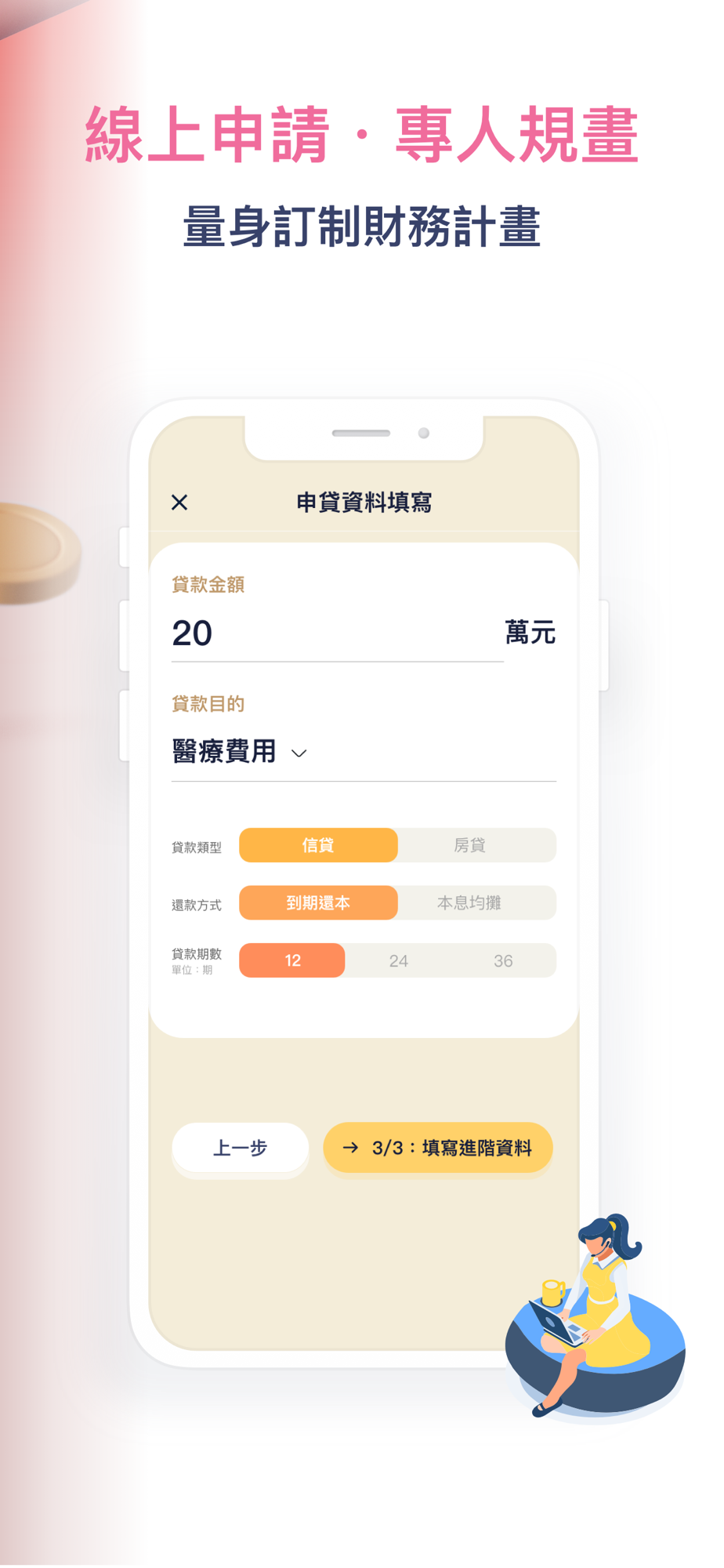 打開APP,簡單幾步驟即可完成線上申貸,解決資金需求。申辦過程中,隨時有專人聯繫與APP即時通知提醒,不漏失任何申辦進度,加速完成申貸作業。