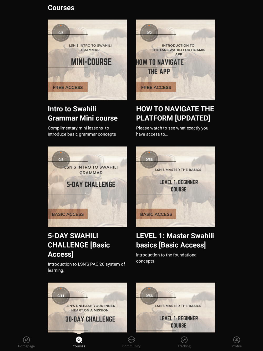 The LSN: Swahili hearts on a mission app, is designed to get you learning faster without wasting time memorizing random vocabulary. I teach you both concepts and strategies that will facilitate your learning in a non-immersive setting.