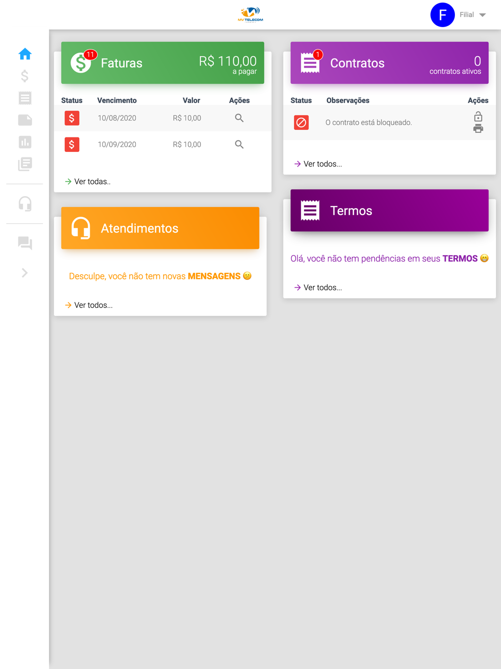 É uma ferramenta em que você pode realizar emissões de 2ª via de boletos, análise de consumo diário ou mensal de suas conexões, efetuar pagamento online de mensalidades, visualizar protocolos e cartilha de segurança da web conforme normativas da Anatel, dentre outras funcionalidades.