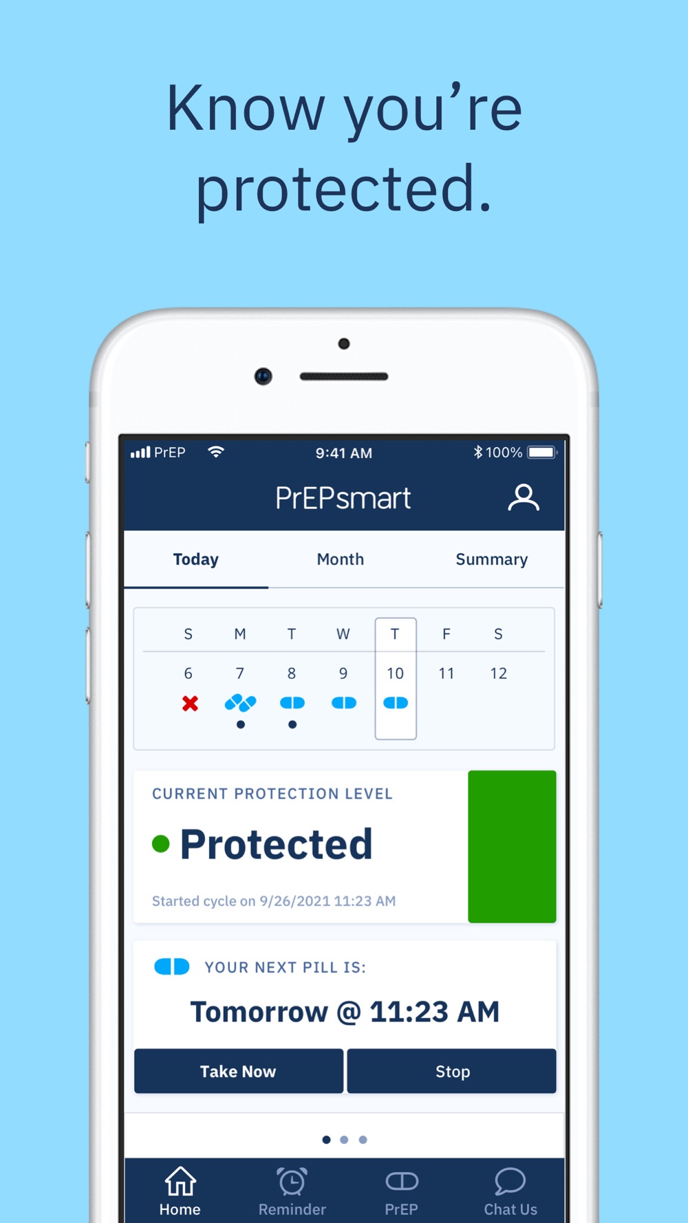 PrEPSmart 211 makes it easy to stay protected. Set pill reminders, track your pill-taking and get insights about your activity.