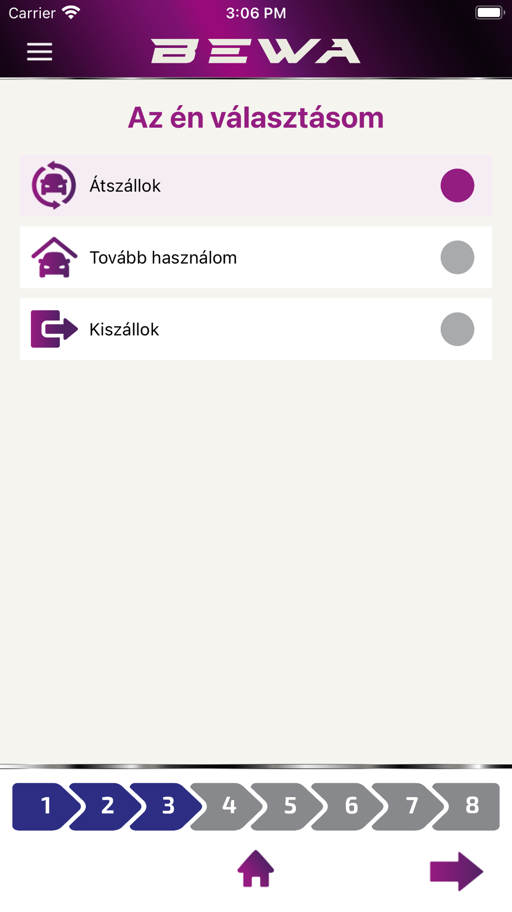 A BEWA alkalmazás, amely automatizálhatóvá teszi a lejáró autólízing szerződések ügyfeleinek megkeresését, lehetőséget biztosítva számukra, hogy egy egyszerűen kezelhető felületen - a korábbi szerződés paramétereiből kiindulva és autópreferenciáik megadását követően - akár munkaidőn kívül, otthonuk kényelméből kezdeményezzék egy új lízingszerződés megkötését, vagy meglévő szerződésük módosítását.