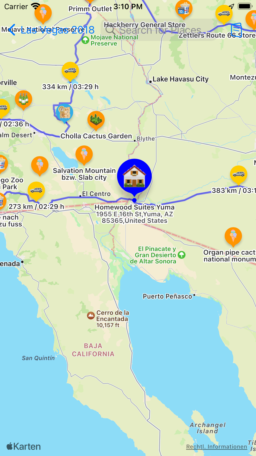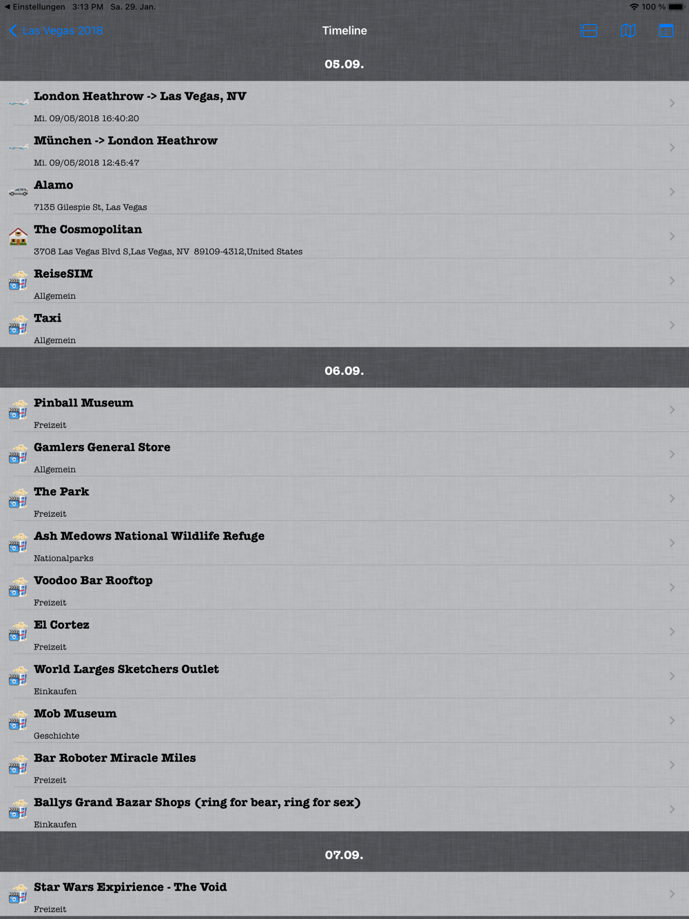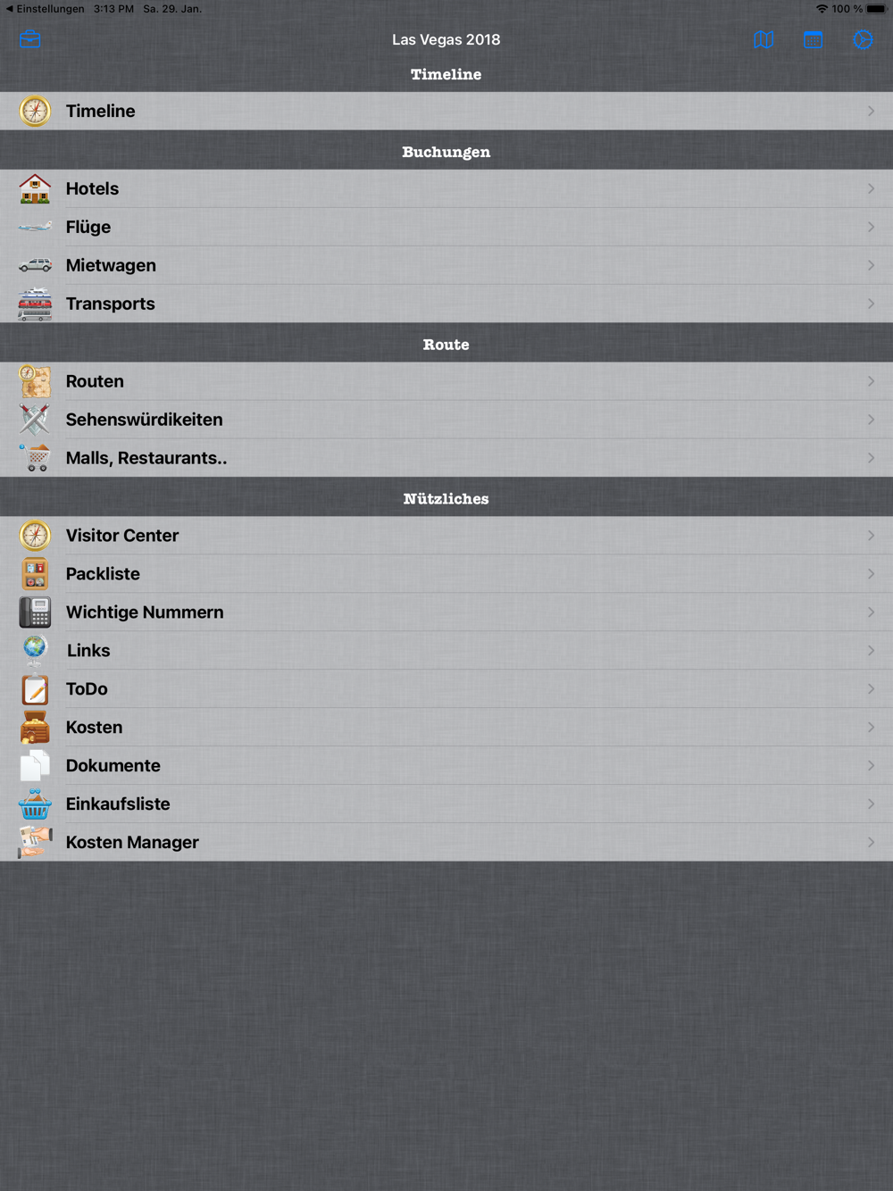 * Full Map integration: Display and search of POIs, hotels, routes, etc. and transfer the address to your items (hotels, etc.)