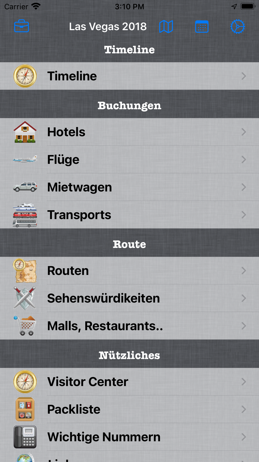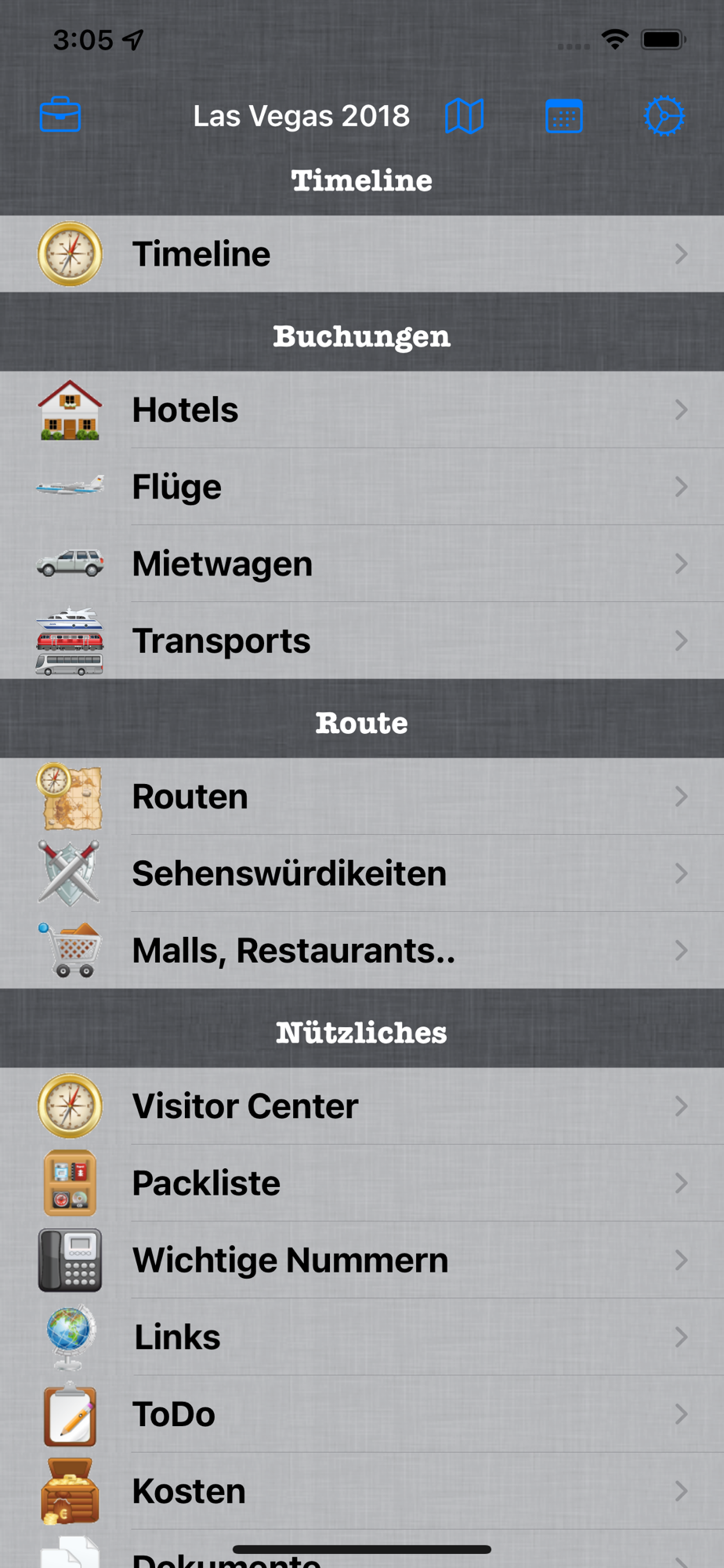 * Document Manager which links your documents to your booking items (see your booking confirmation directl for the hotels, flights, etc)