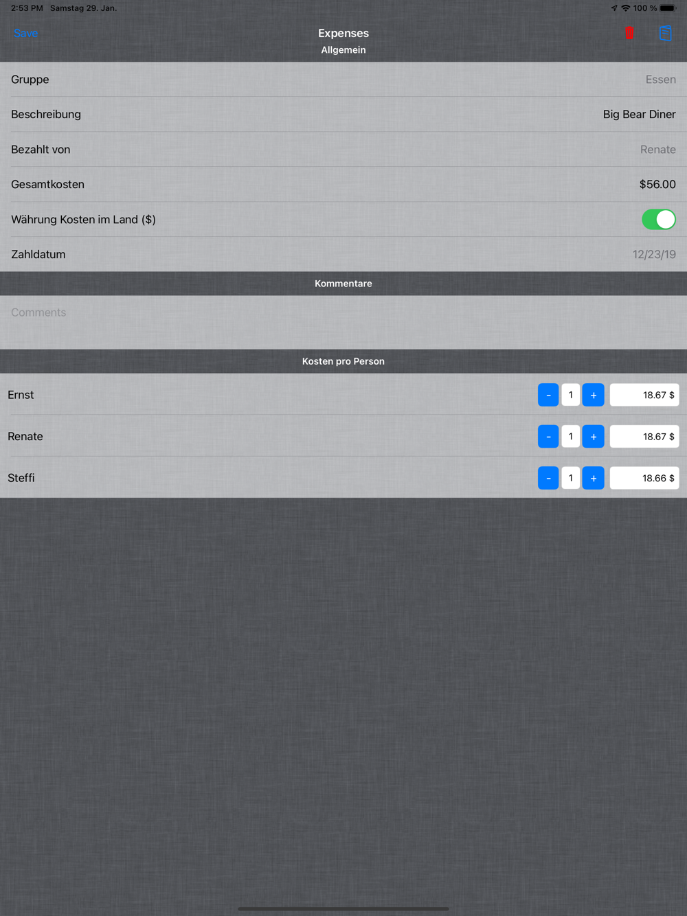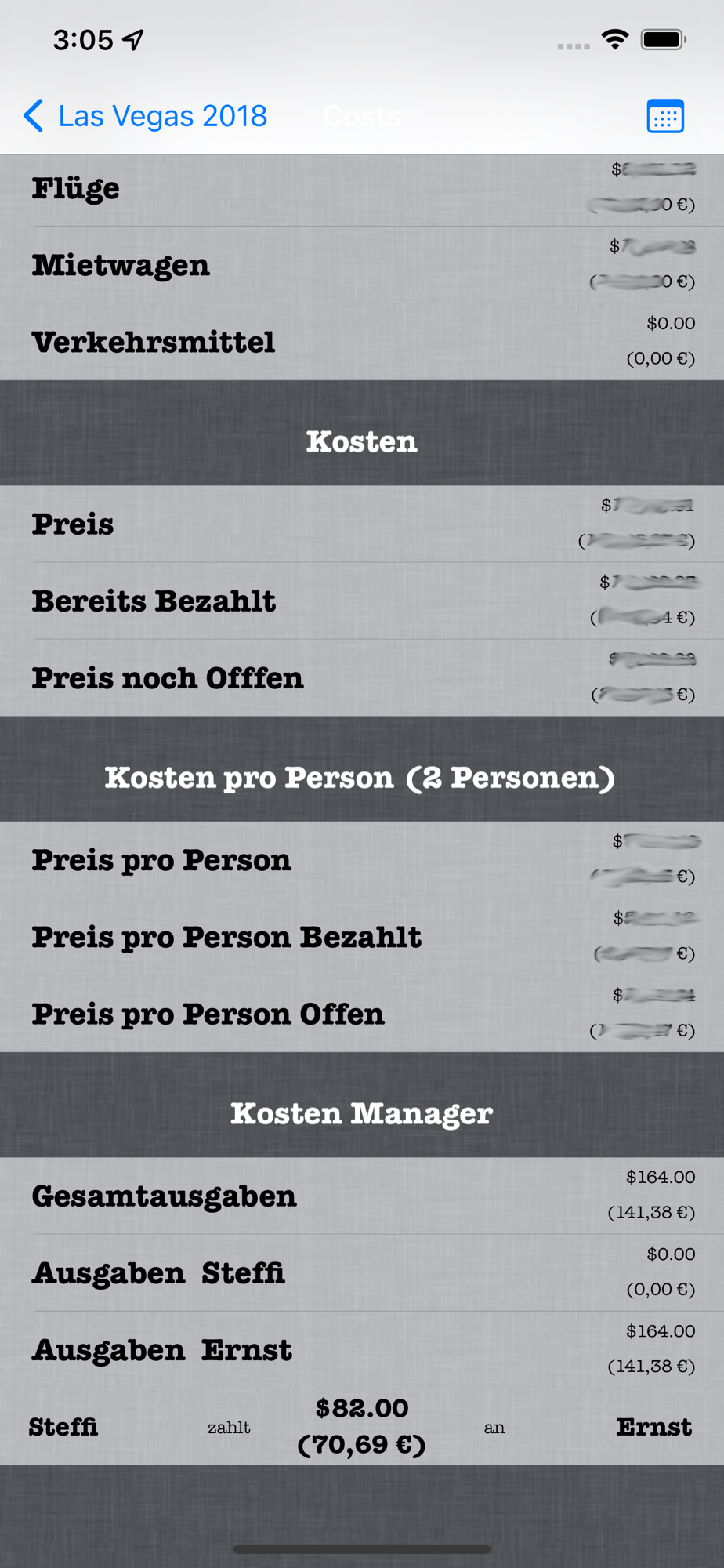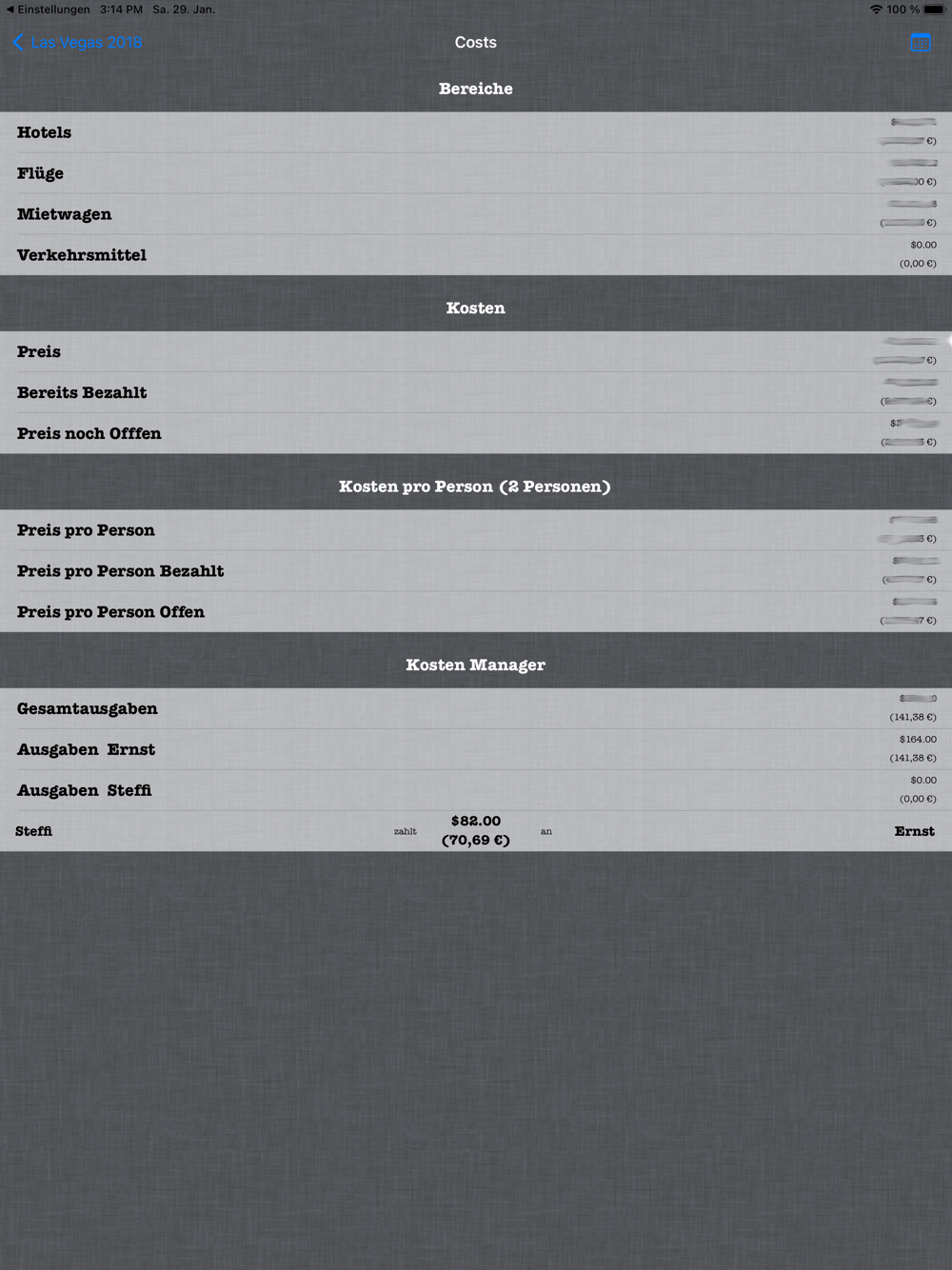 * Cost Management: Shows you the total costs of your trip (per person, what is still to be paid and what has already been paid) at any time