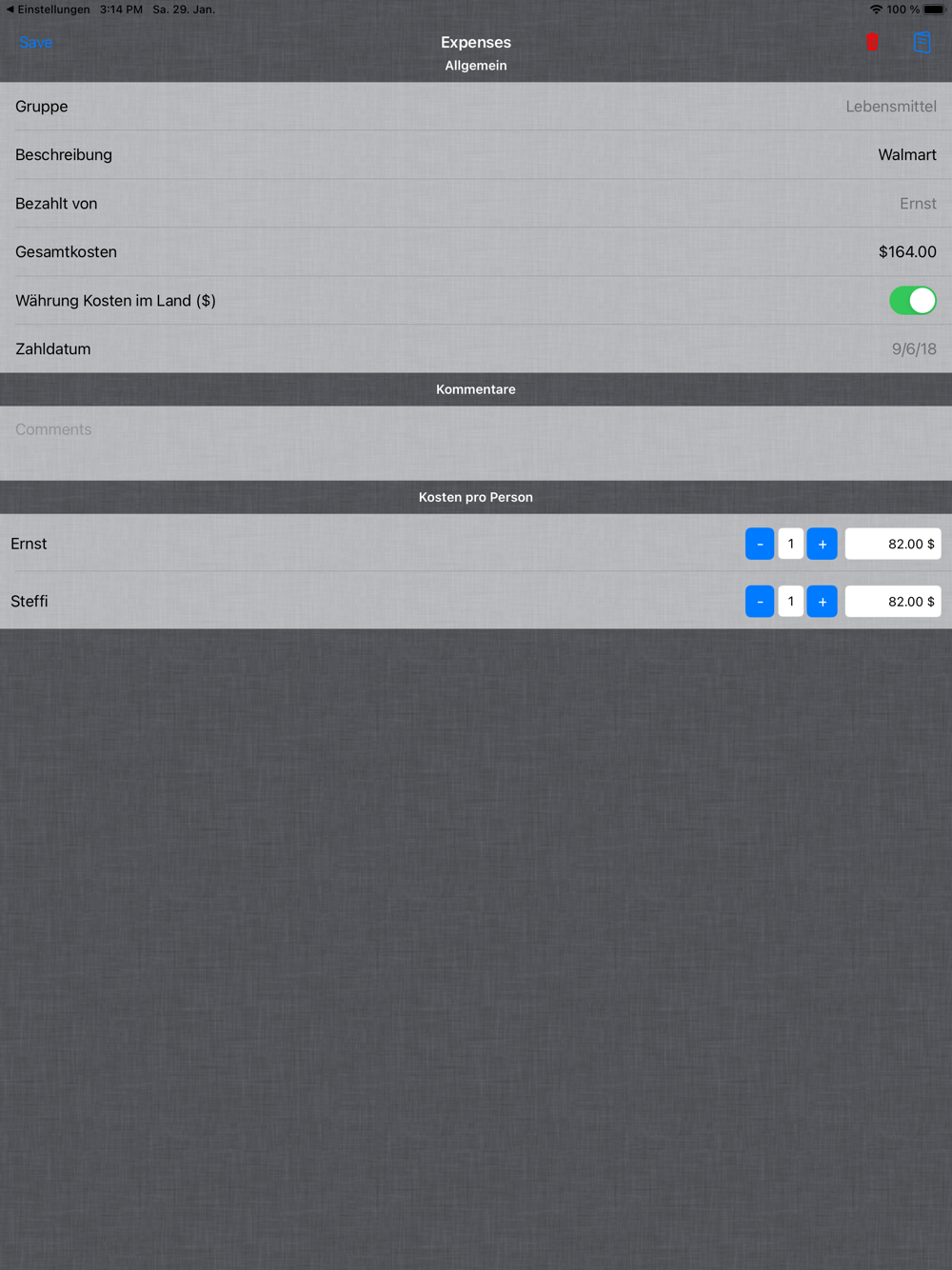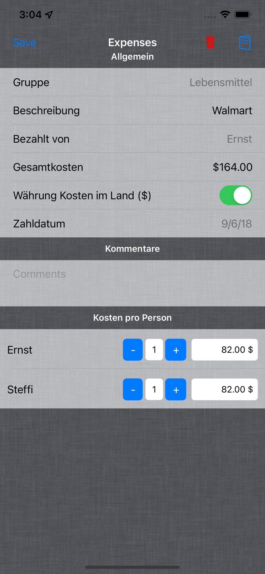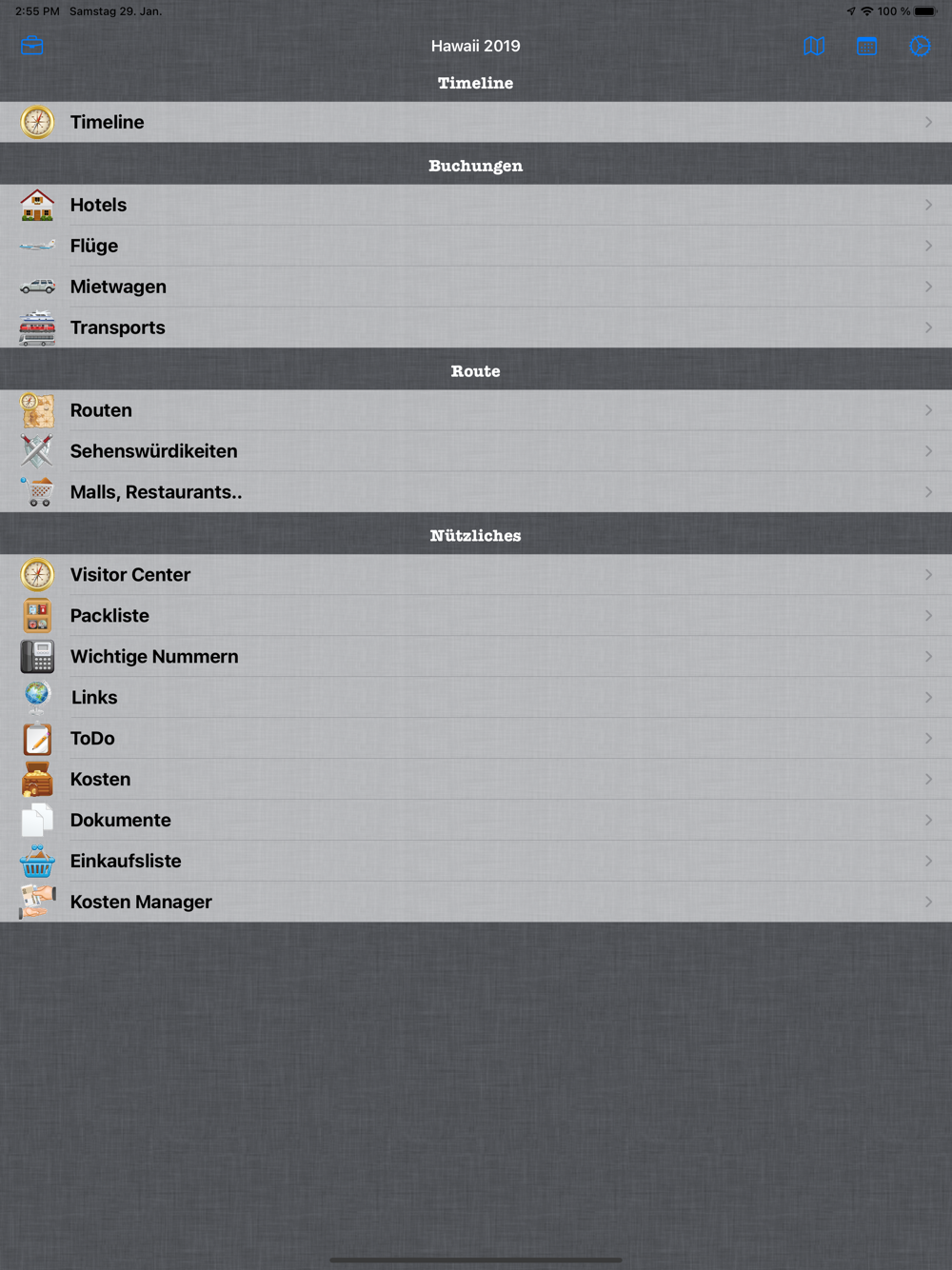 * Cost Management: Shows you the total costs of your trip (per person, what is still to be paid and what has already been paid) at any time