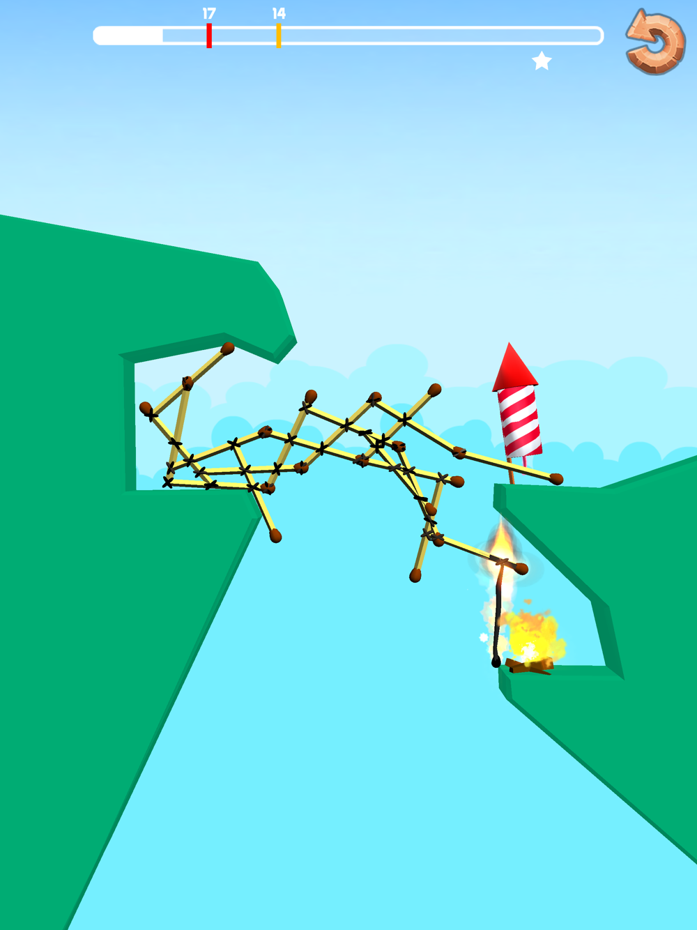 Connect the rocket and the fire source with a construction of matches.