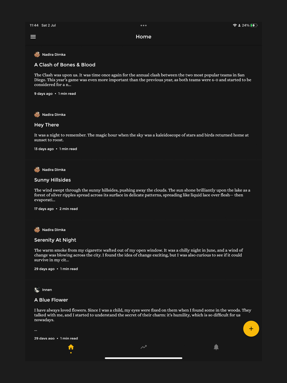 Find stories written by other authors on the platform, and enjoy reading them using a light or dark theme. You can also save stories for later.