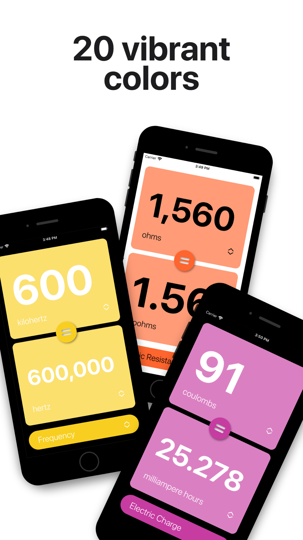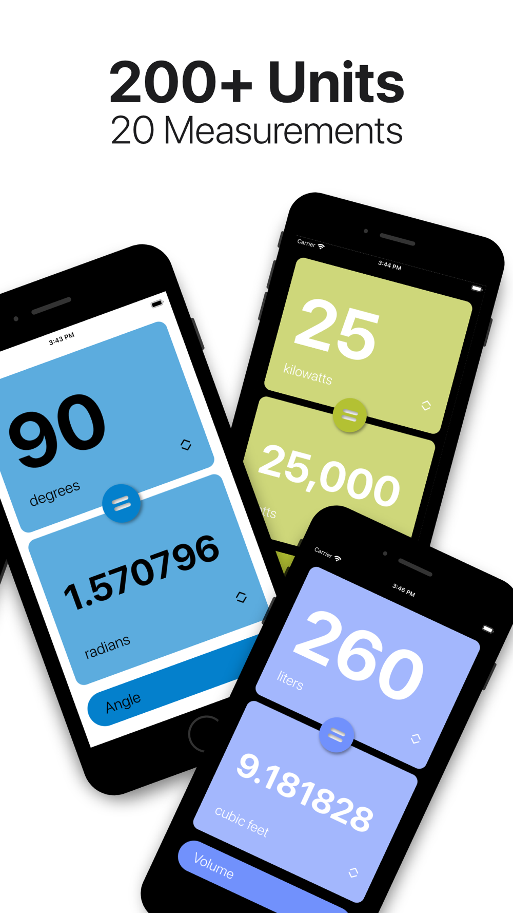 CNVRT supports over 200 different units and 20 different measurements, each with its own unique color.