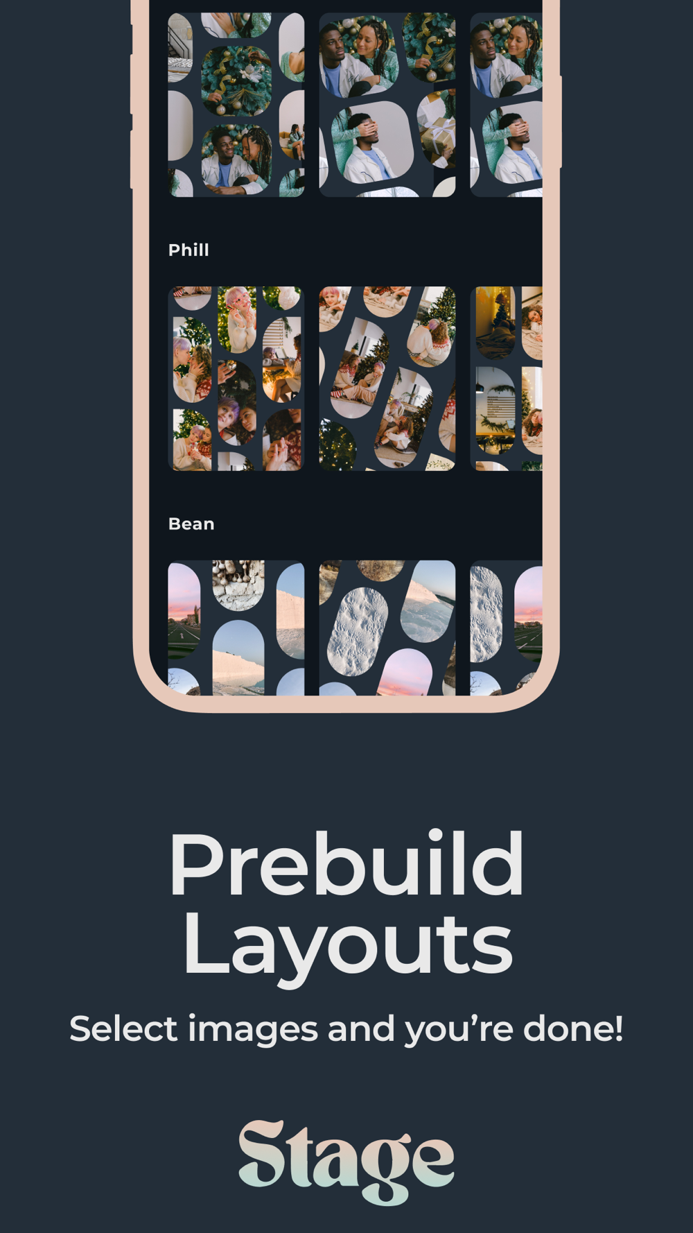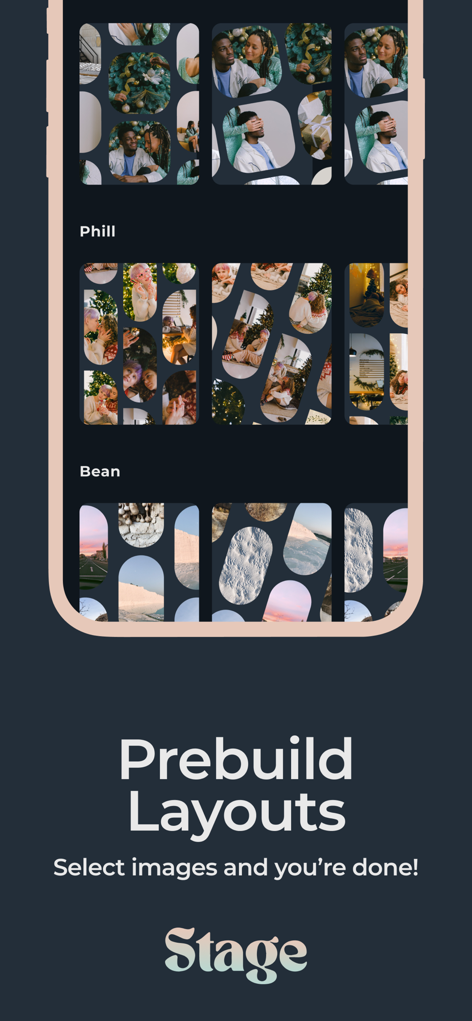 Fill the boxes, shuffle layouts and share the story on Instagram directly or save the image on your phone. With Stage’s different layouts, design social media content in seconds. Select layout, pick images, and voila!