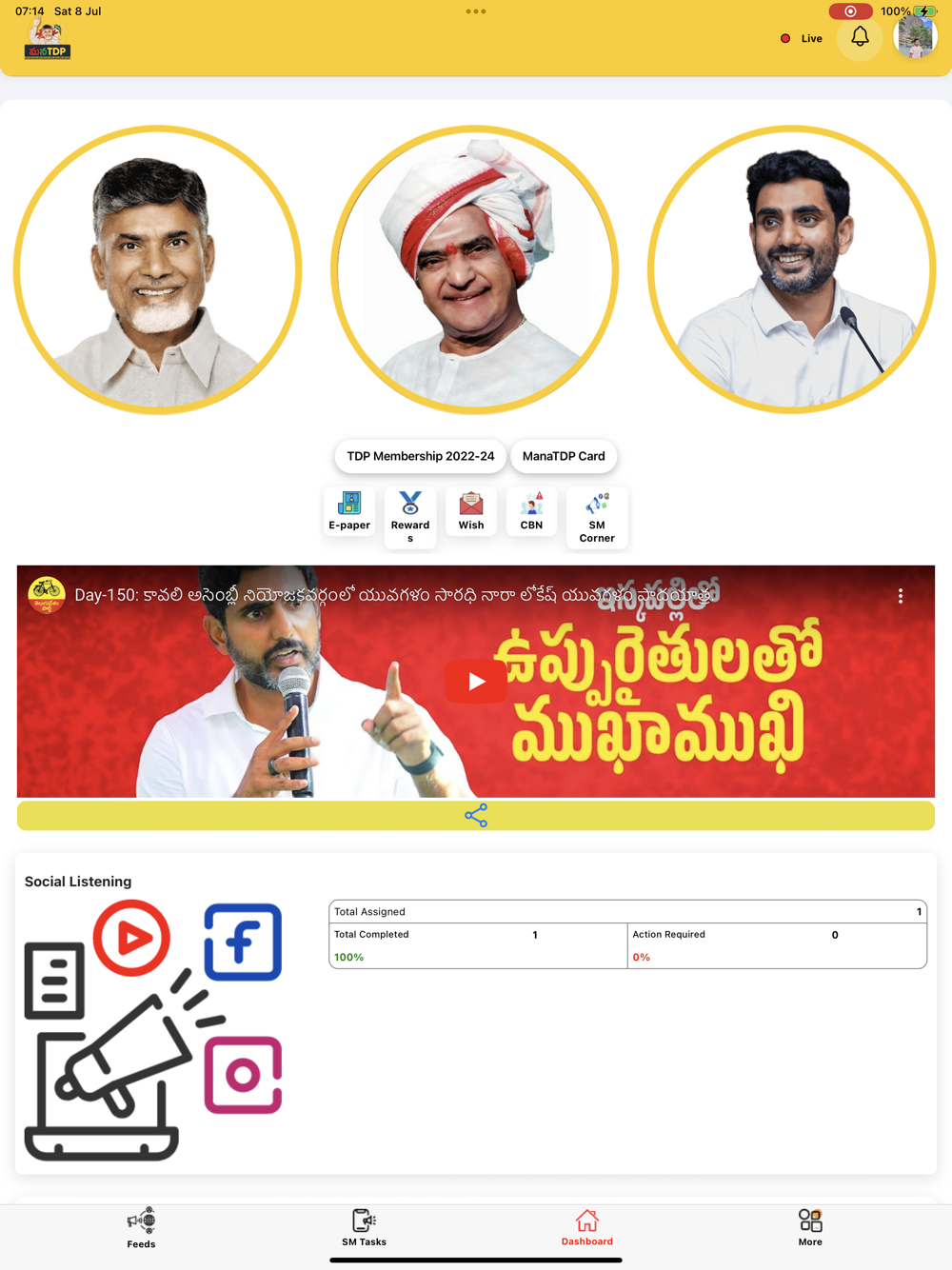 apps you can View or share your creative content which can be in any format like Audio, Video, Text or Image and you can also access the daily E-News paper from ManaTDP App and know the facts which is happening in Constuencies.