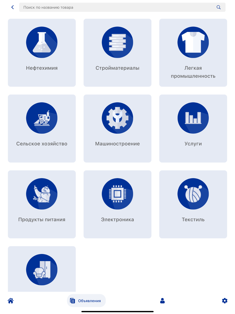 Площадка Государственной товарно-сырьевой биржи Туркменистана является площадкой для размещения объявлений о биржевых товарах для продажи, а также получения информации для потенциальных покупателей. Это эффективный канал сбыта реального товара с широкой географией базисов поставки по сформировавшейся рыночной цене. Для удобства поиска все товары разделены по категориям «Нефтехимия», «Стройматериалы», «Легкая промышленность», «Сельское хозяйство», «Машиностроение» и т.д.
