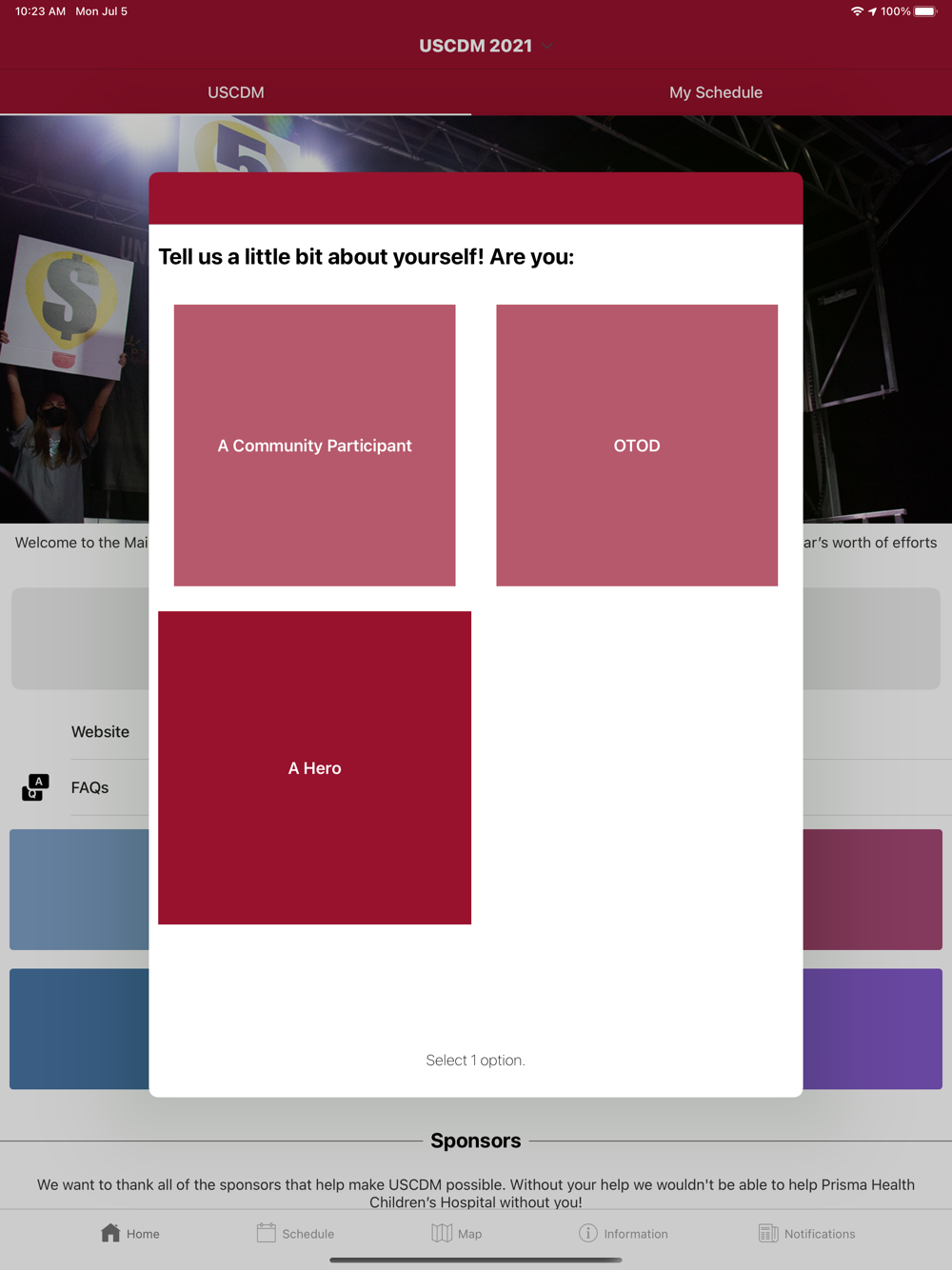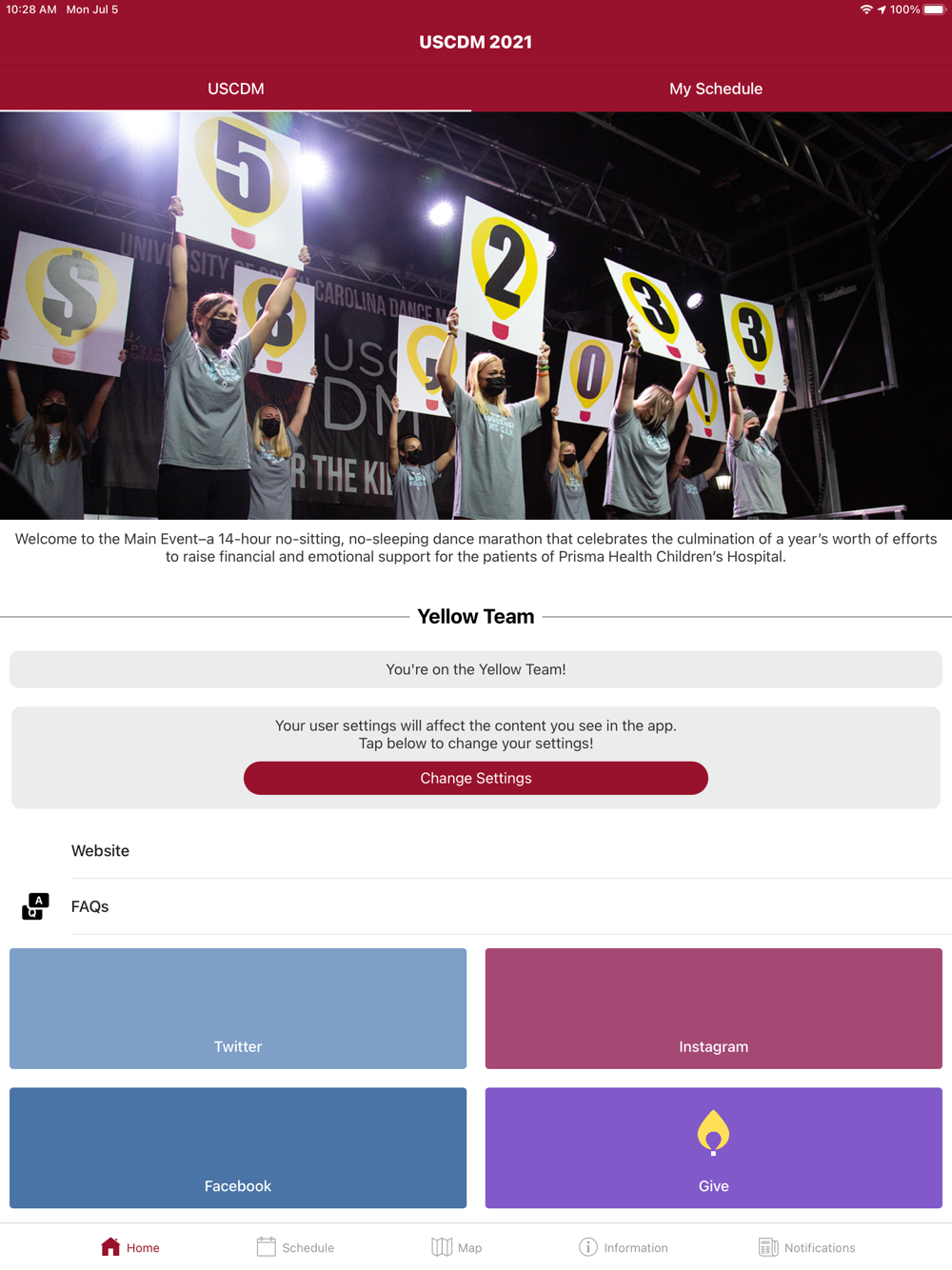 University of South Carolina Dance Marathon is the largest student-run philanthropic organization on UofSC's campus. We are a movement uniting our students, campus, and community to raise funds for the Child Life Program at Prisma Health Children's Hospital, our local Children's Miracle Network Hospital. Throughout the year, we host a variety of events including our spring Main Event, which is a 14-hour no-sitting, no-sleeping dance marathon that celebrates the culmination of a year’s worth of efforts to raise financial and emotional support for the patients of Prisma Health Children’s Hospital. This app will enable you to navigate your yearlong experience with USCDM- we cannot wait to make miracles with you!