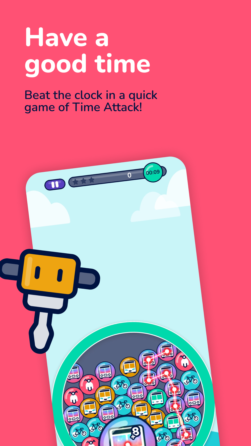 In the Time Attack game, you must get 20,000 points as quickly as possible by flicking chained "bubbles" out of the circle. The faster you do, the higher the score.