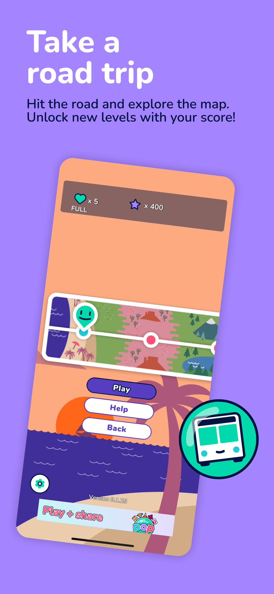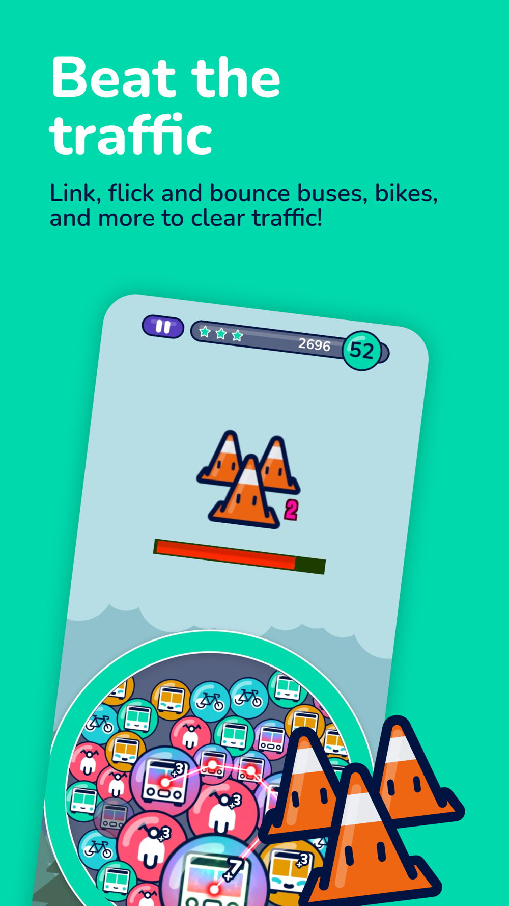 The Road Trip game takes you on a journey through different worlds, where public transit and micro-mobility bring you to each stop on the Road Trip Map. On your journey, you’ll encounter obstacles such as road cones, road barriers — and more!