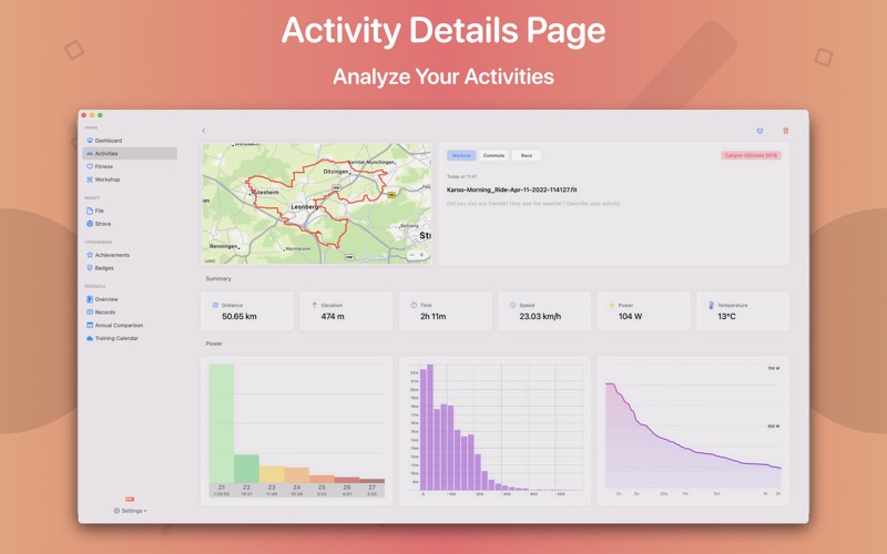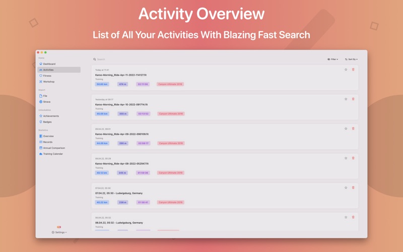 Velo Center is a fast app where you can import your bike rides. After the activities are imported, you can analyze them.