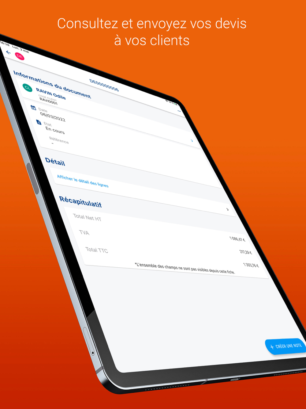 Besoin d’une information sur un client, un devis, une facture ? Consultez toutes vos données directement dans votre mobile.