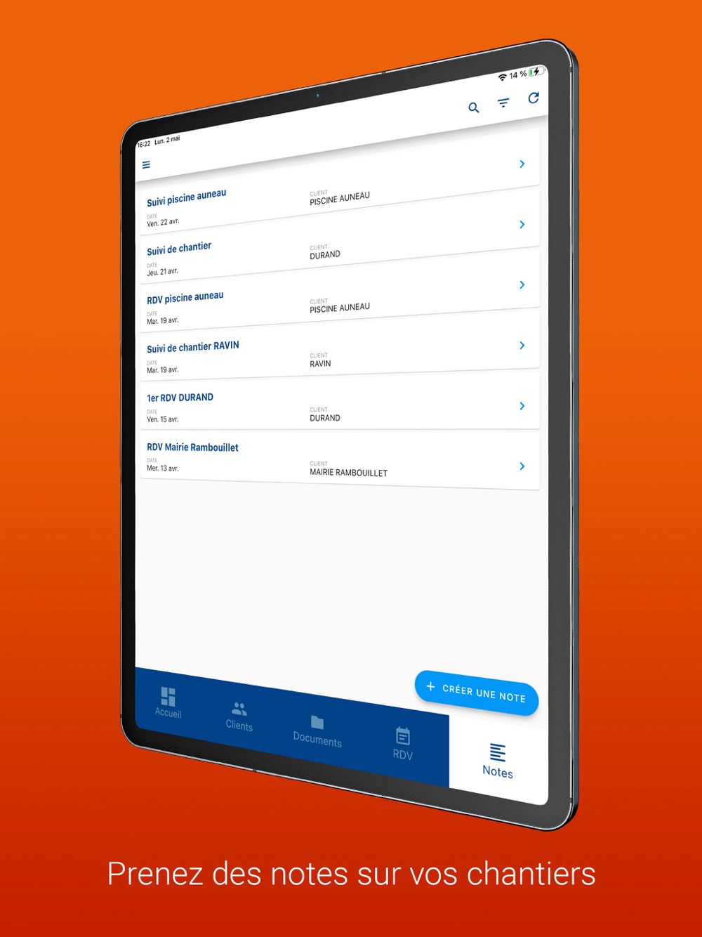 Prenez toutes les notes nécessaires lors de vos rendez-vous. Elles se synchronisent automatiquement avec votre logiciel pour faciliter la réalisation de vos devis. Plus besoin pour vous ou votre assistante de courir après votre carnet, l’intégralité des informations sont synchronisées.