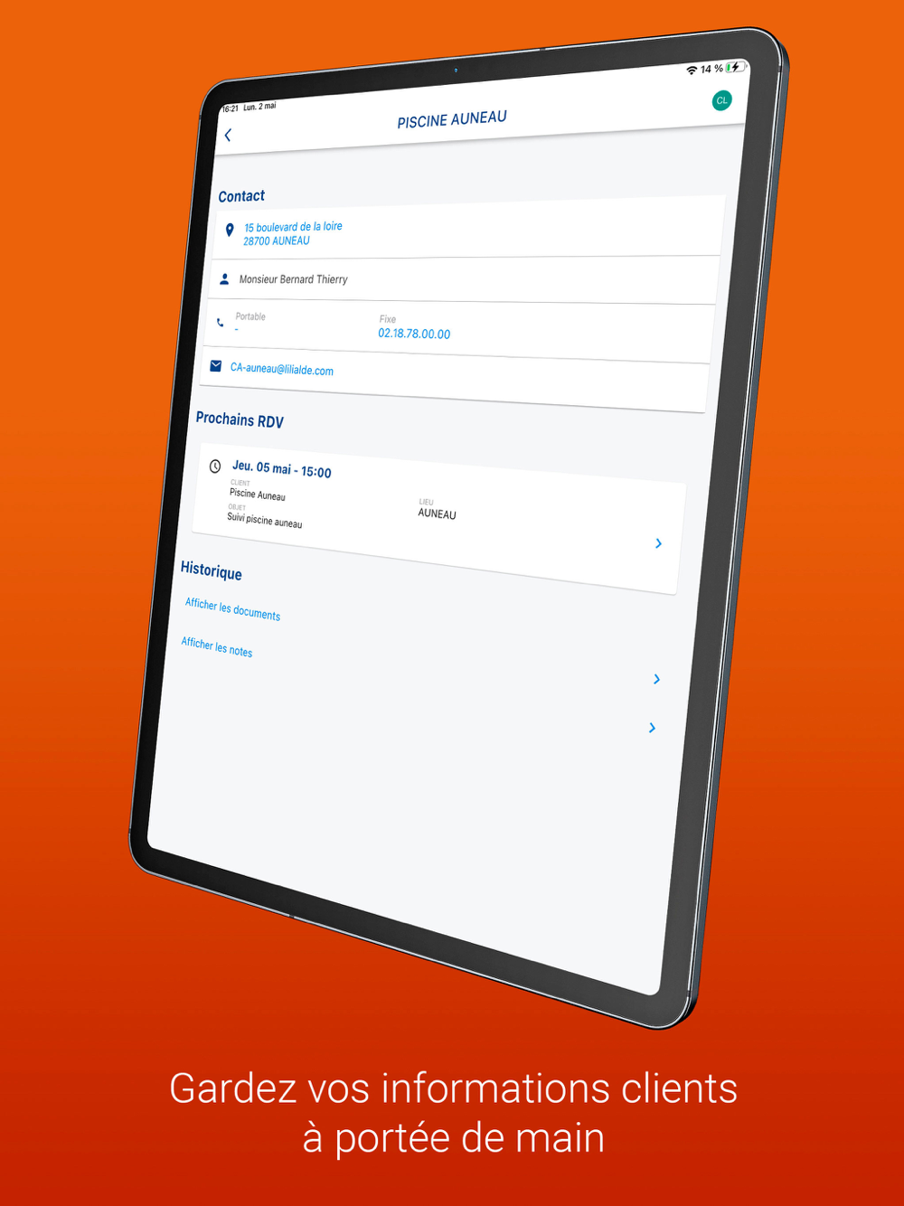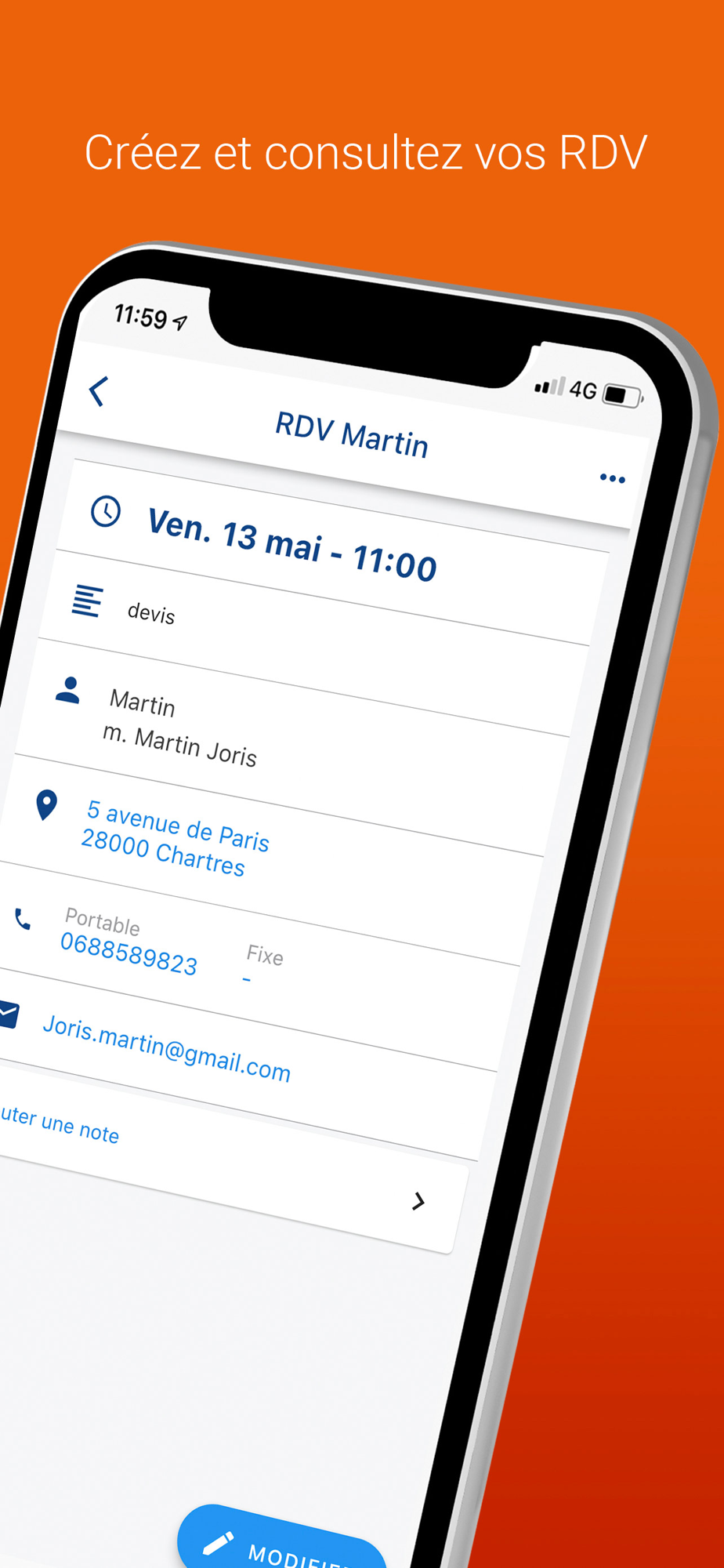 - Coordonnées du client dans le rendez-vous : téléphone mobile, fixe et adresse e-mail