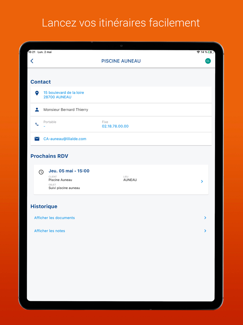 Créer vos rendez-vous dans l’application et retrouvez-les automatiquement dans le logiciel. Vous suivez ainsi facilement vos plannings, lancez vos itinéraires en un clic et retrouvez ensuite toutes les informations parfaitement intégrées dans le logiciel pour faire votre devis !