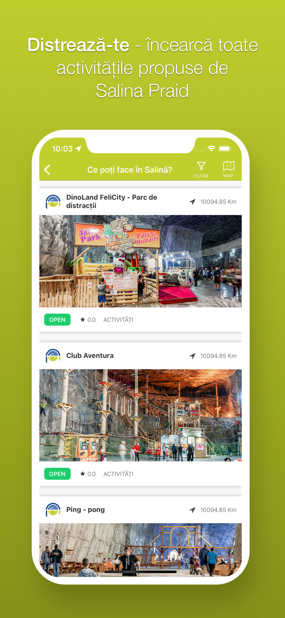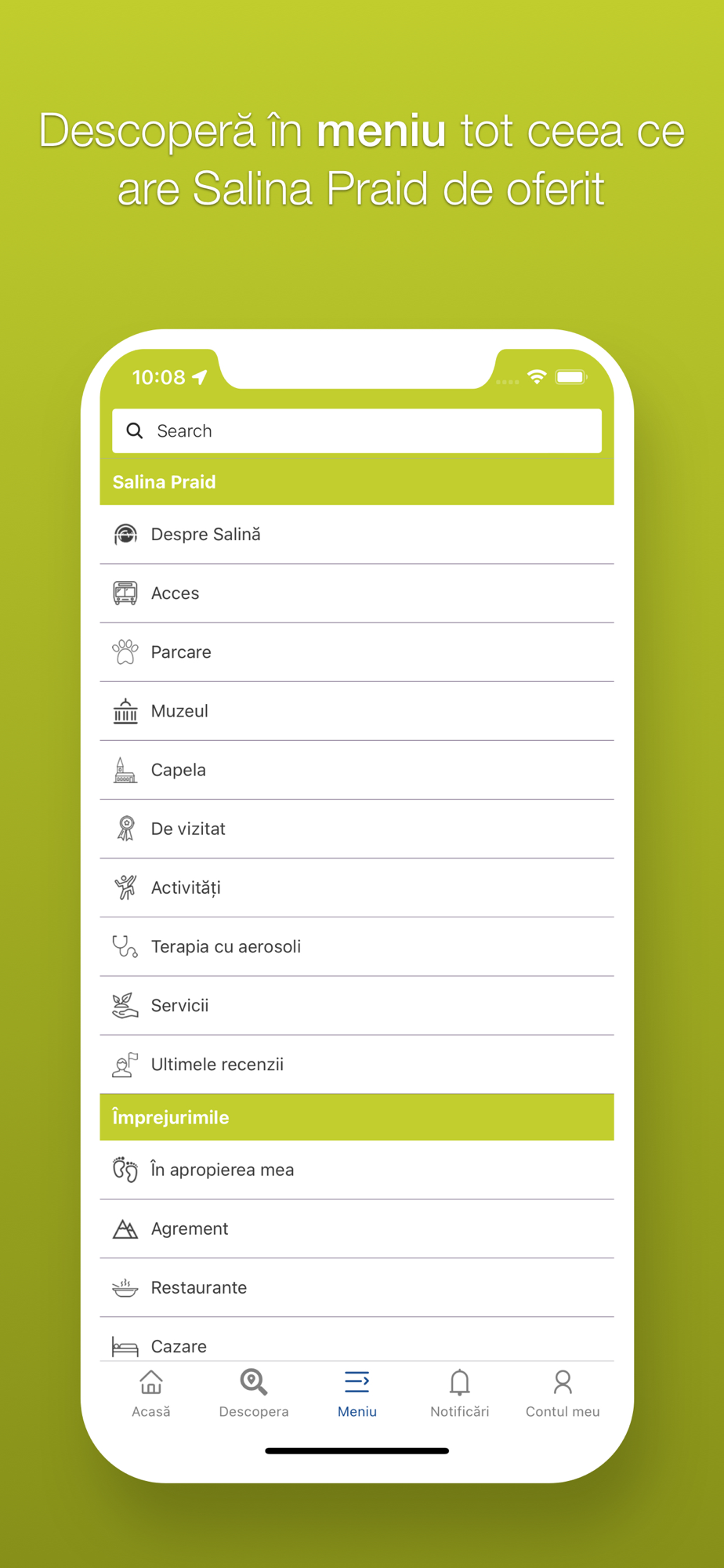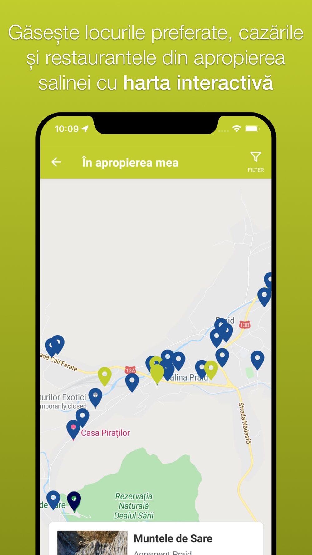• alege pe harta „în apropierea ta” cazări, restaurante și activități recomandate de Salina Praid;