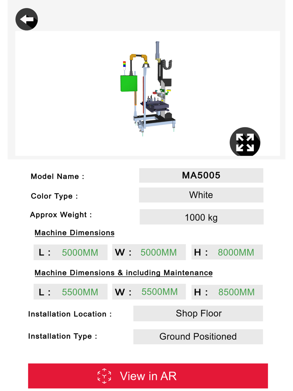 Mahindra AR app is developed with the idea of enabling Mahindra team members or Customers to try Machines on shop floor before they actually get it there. Using Mahindra AR app customer who have access of the app shall be able to view different models shared by Mahindra Admin member. Mahindra Customers can download the app from the play store and app store. Collision detection requires LiDAR scanner on the device to give satisfactory results, without that user can just see the model and maintenance area on his phone and judge if it is the right place to place the model.