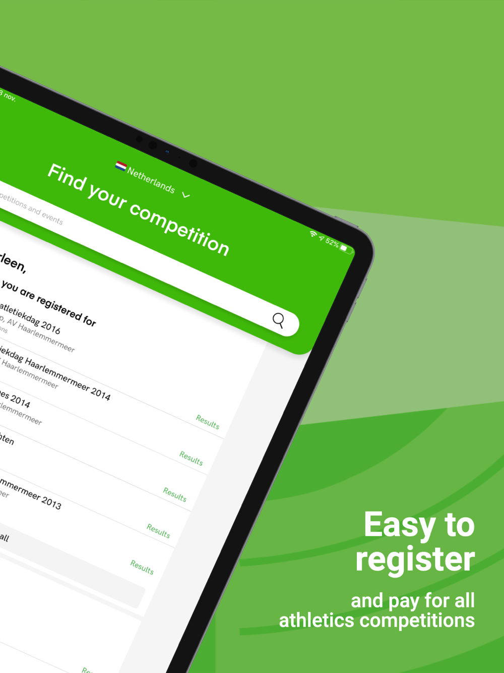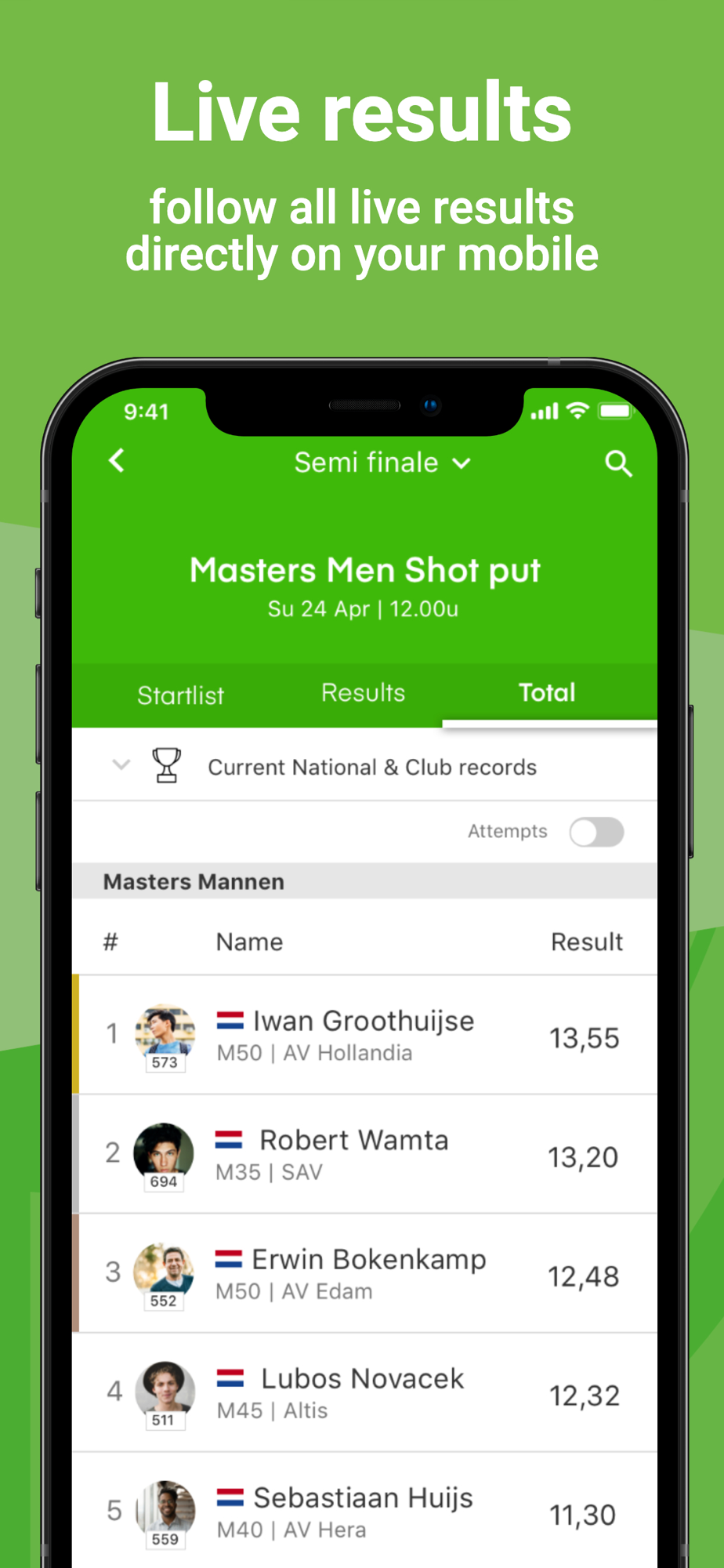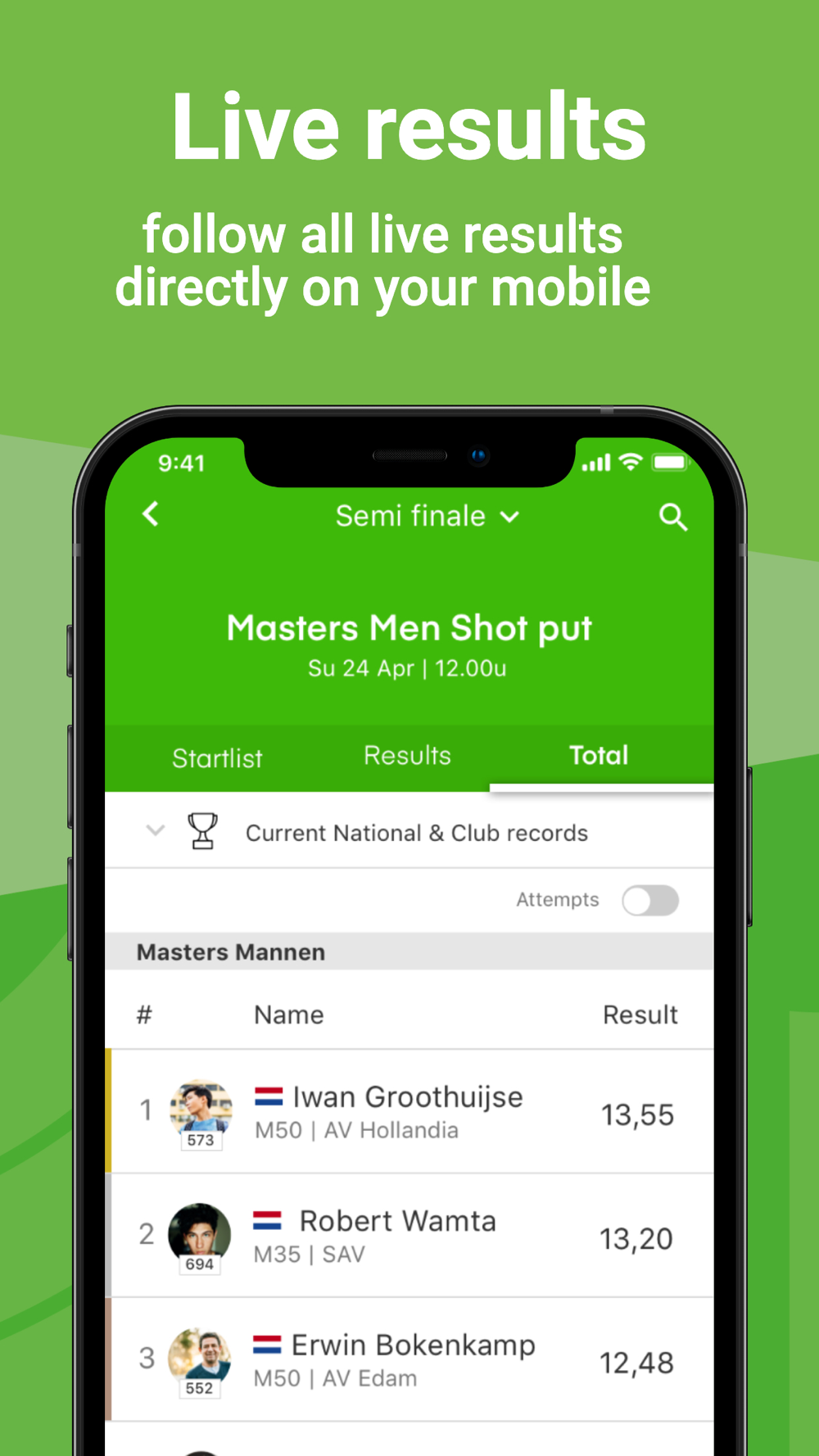 With Athletics.app you will find all athletics competitions in the Netherlands & Belgium in one overview. With more than 5,000 competitions, 100,000 athlete profiles and more than 8 million results, Athletics.app is the most complete athletics platform and community of athletics fans.