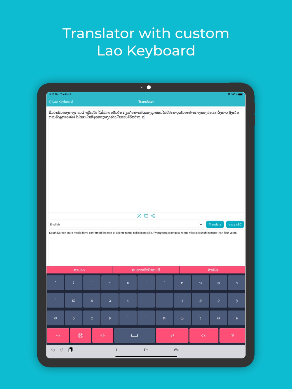 • If you later wish to translate your Lao message to any other language, you can easily do so as there are a number of languages already pre-installed in this Lao keyboard and Translator with iOS software.