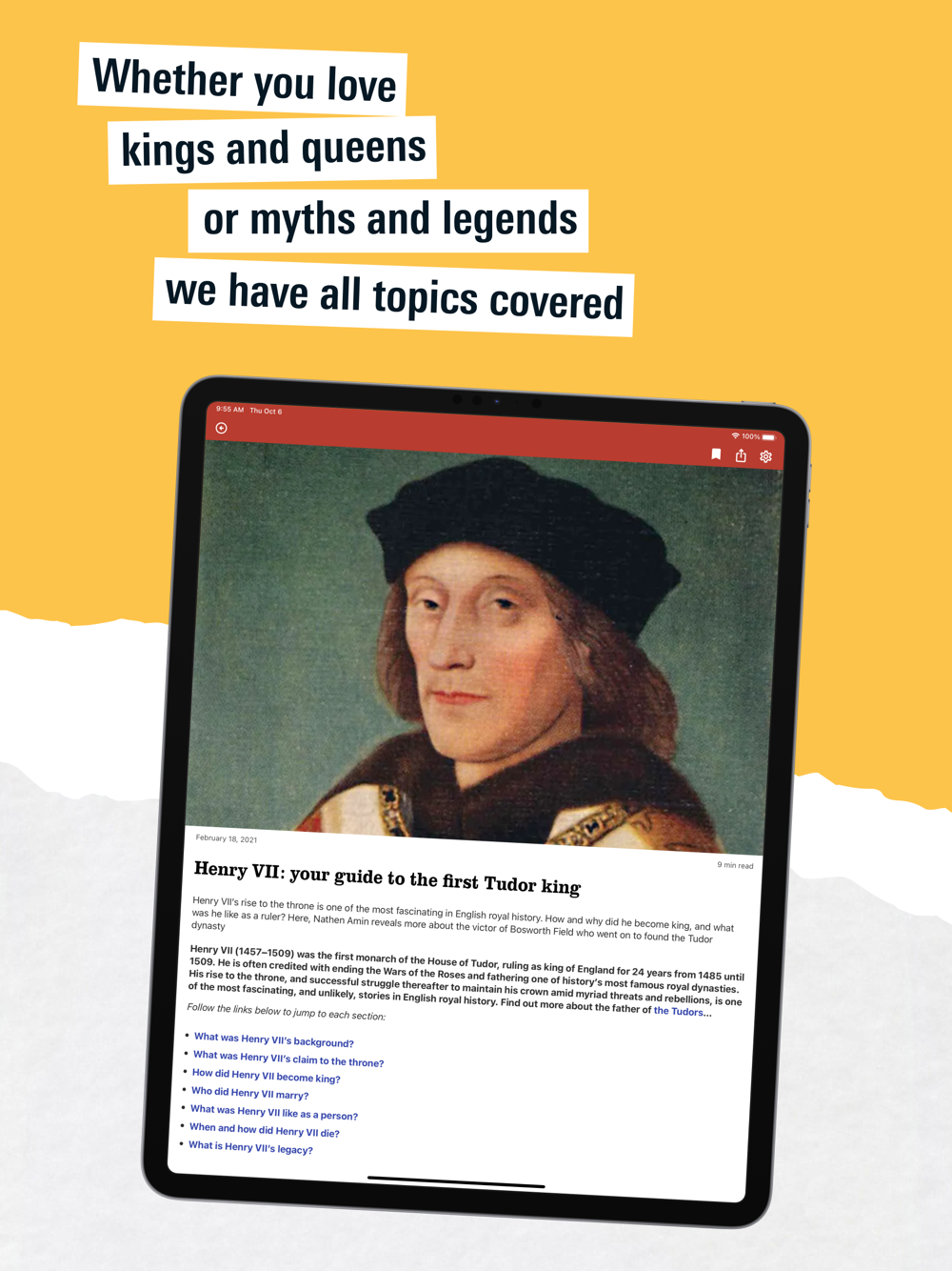 Explore history with the HistoryExtra app. Discover thousands of features written by expert historians with exciting new content added daily from podcasts to masterclasses and more.