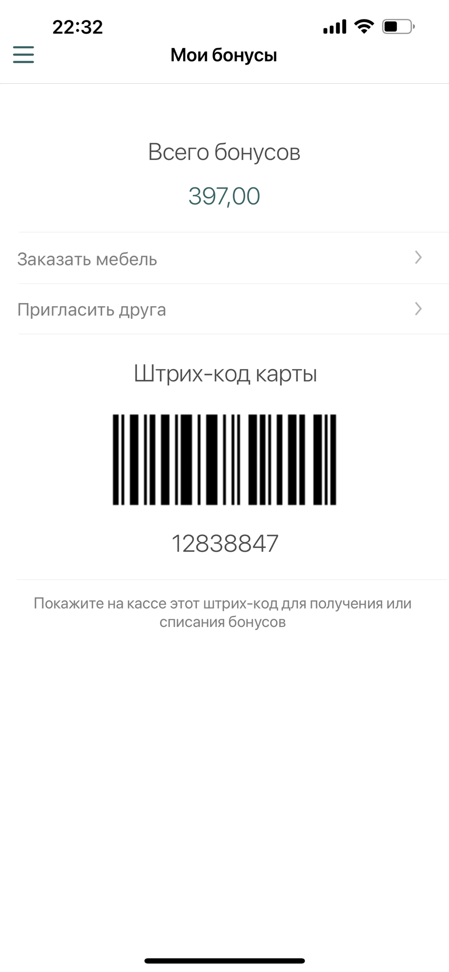 - просматривать баланс бонусных баллов в программе лояльности;