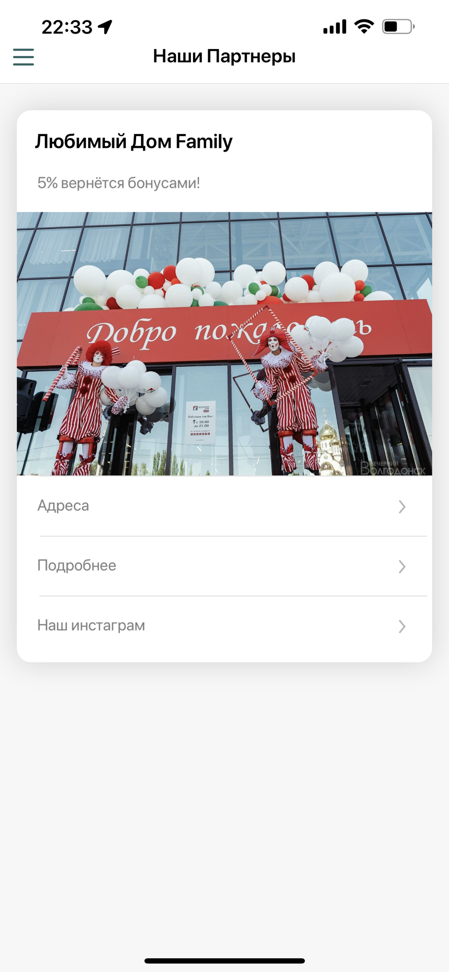 - получать информацию об акциях сети "Любимый Дом" и других Партнеров программы лояльности;