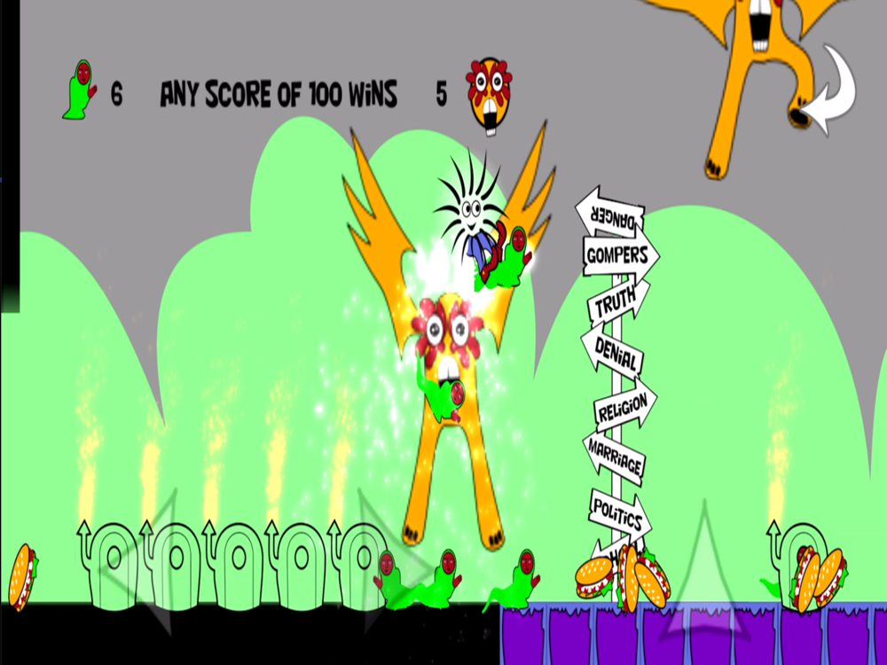 A Gomper is a big ugly kaiju monster that loves to eat hamburgers. They usually have wings, but some have tentacles. The problem is, when the hamburgers run out, Gompers will eat the cute little Podlings. Play 4 different fun mini games to protect the wee tiny Podlings from the big evil sinister Gompers.