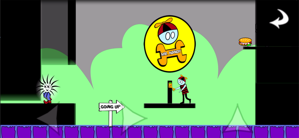 Enter Mr. Handy's elevator room and search for ways into all the various games. You will find mini games like 10 vs 10, Burgerball, and 10 vs 100. If you can find the garage, you can take a ride in Mr. Handy's Burgermobile while listening to original music by Tigerwall Flip, Rain Station, Strip Karaoke, and Jay E Moores on the car radio. There is also a crazy fast action platformer game called The Great Burger Battle, for full on Gomper madness.