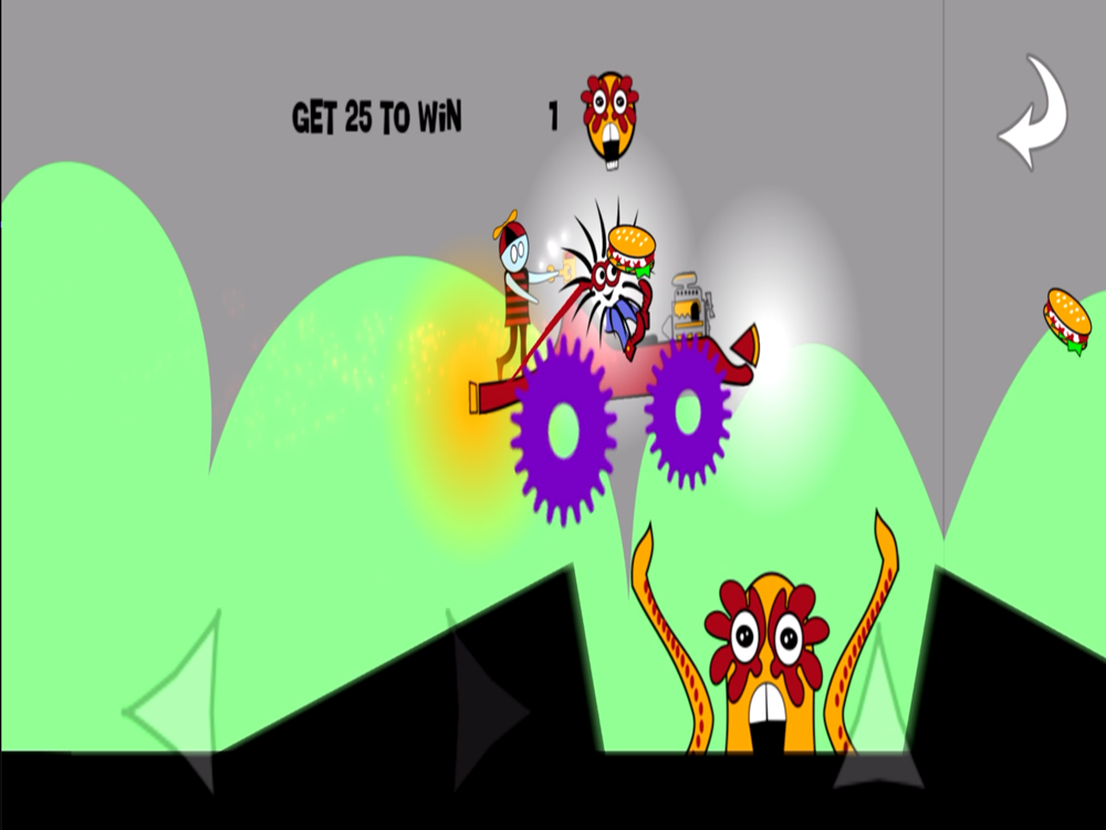Burgermobile - side scrolling car racer. The car bounces hamburgers up at the Gompers making this an insane ride.