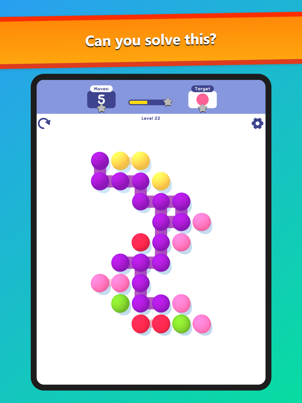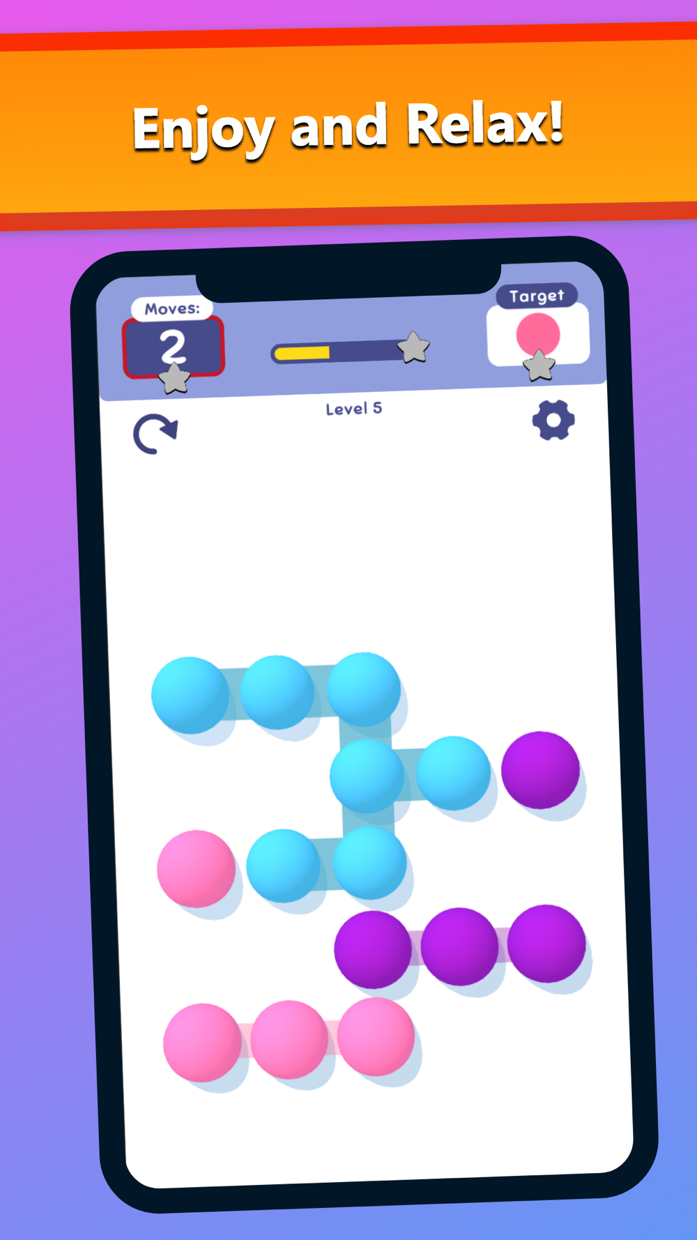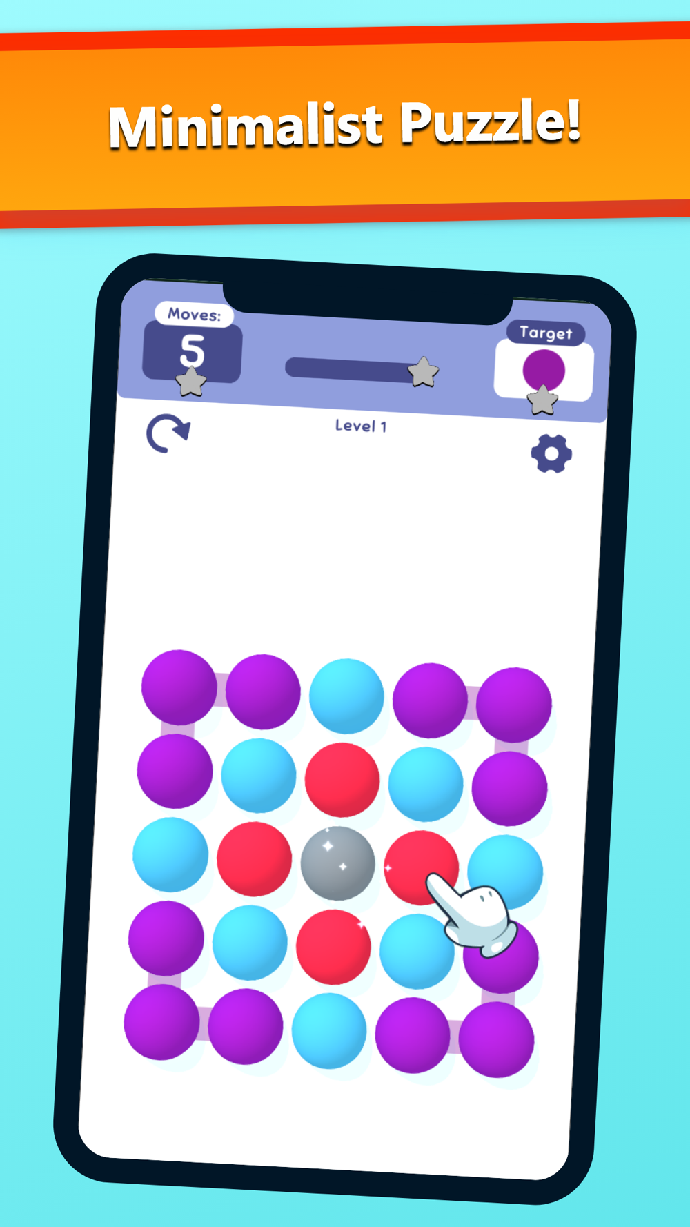 Easy to control, simple tap on any ball to take its color! Watch out your moves, you need to achieve the objective before you run out!