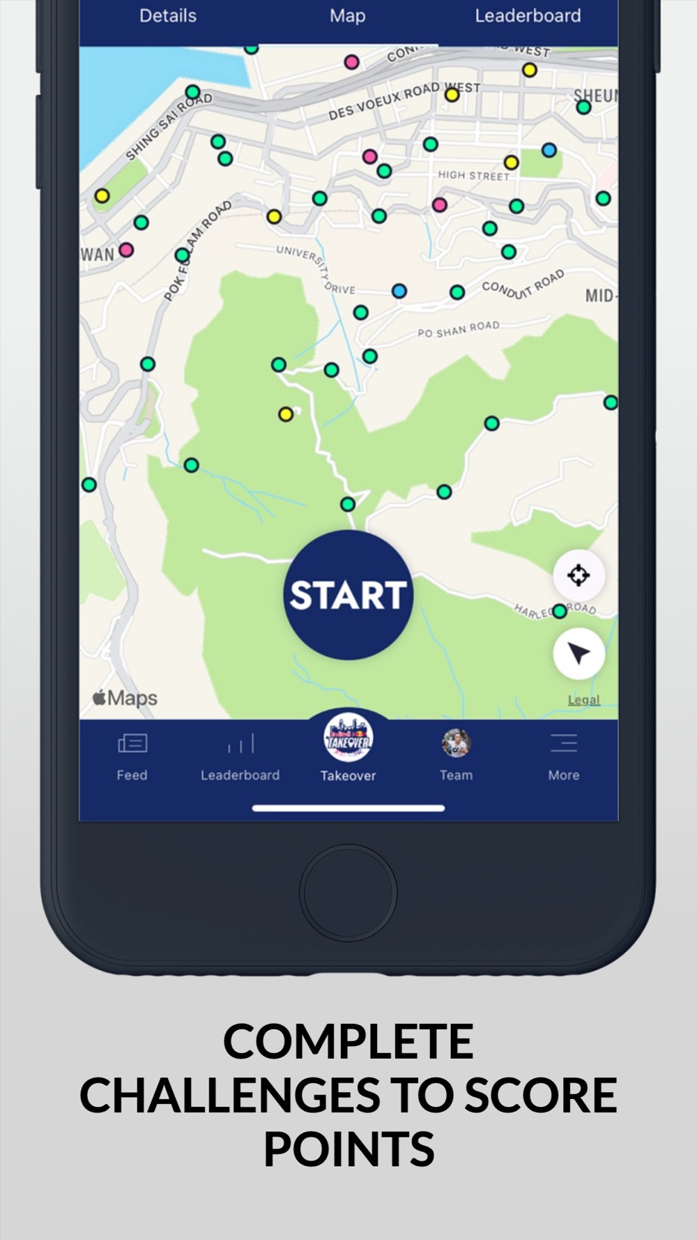 Red Bull Takeover is a virtual explorace from Red Bull. Using the Red Bull Takeover App participants will join either the Red or Blue team and run to collect points for their team at various checkpoints around the city. The team with the highest average score once the timer has stopped wins. Track your score and ranking using the live leaderboard in the app!