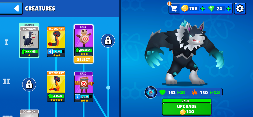 In the game EVO, you adapt your species to survive, and stay one step ahead of opponents. Choose your fantasy monster and go through the chain of evolution with him. Do you want to play as an electric cat? Or maybe a wolf or a skeleton? There are characters for every taste! Each monster has several stages of evolution, as well as additional improvements. Complete your collection and master the rich fantasy bestiary in its entirety. Can you make it to the end?