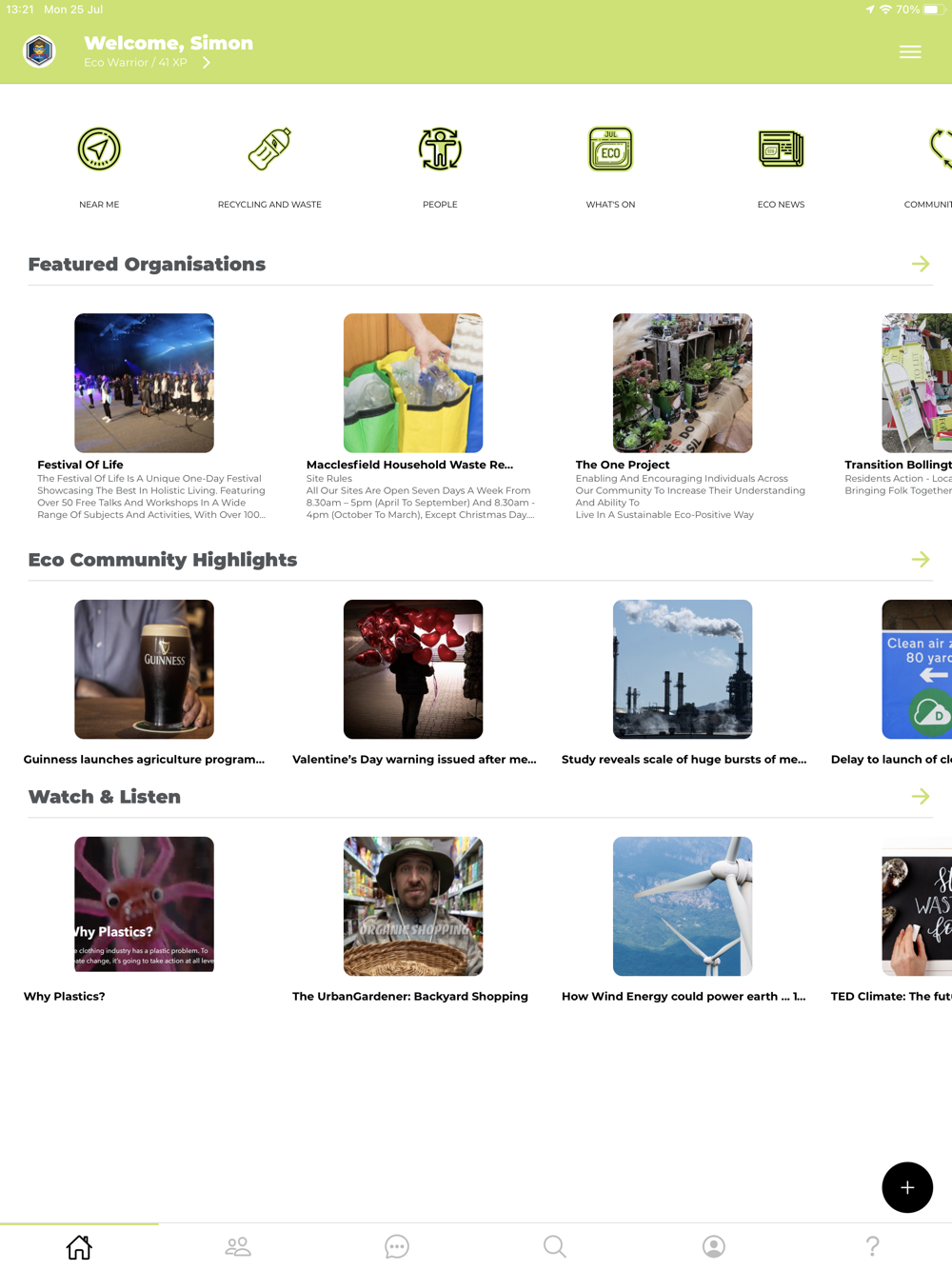 The Eco-Community aims to provide a single source of Organisations, Events, and Education on all things Environmental in a fun, insightful, interactive app.