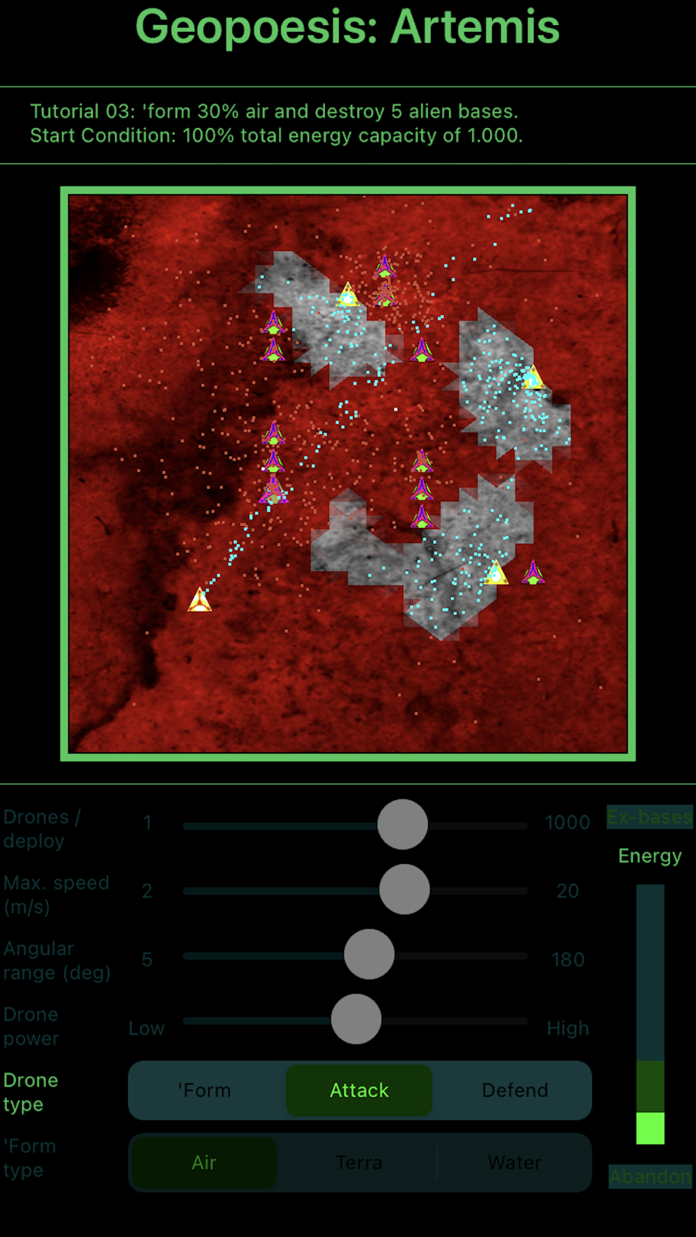 - Timing, energy management, shrewd selection of drone characteristics and base placement will be critical to successfully terraform each area ... And, don’t forget .. you may not be alone ! Think chess-like levels of strategy coupled with real-time action.