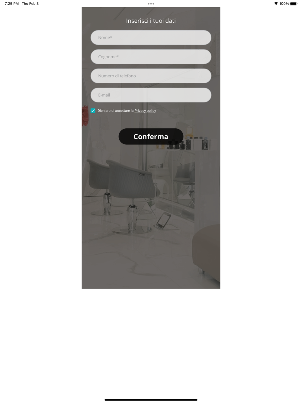 Inserisci i tuoi dati, scegli i trattamenti di cui hai bisogno e prenota con il tuo operatore preferito.