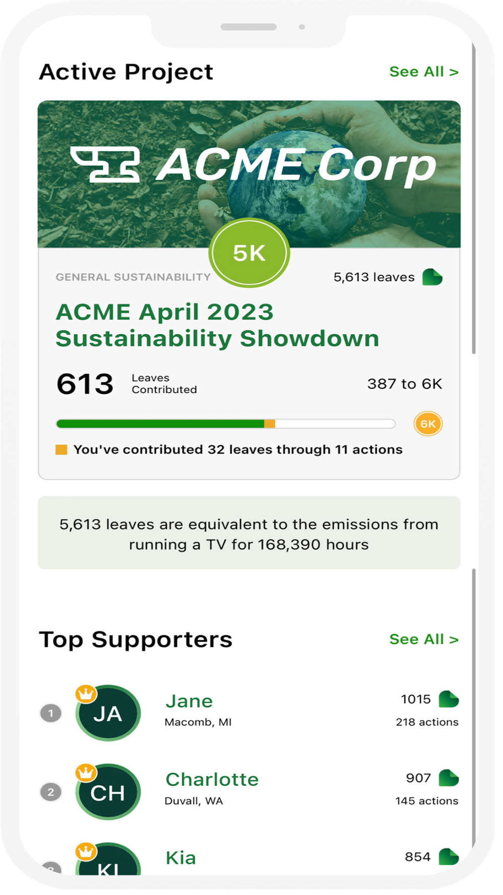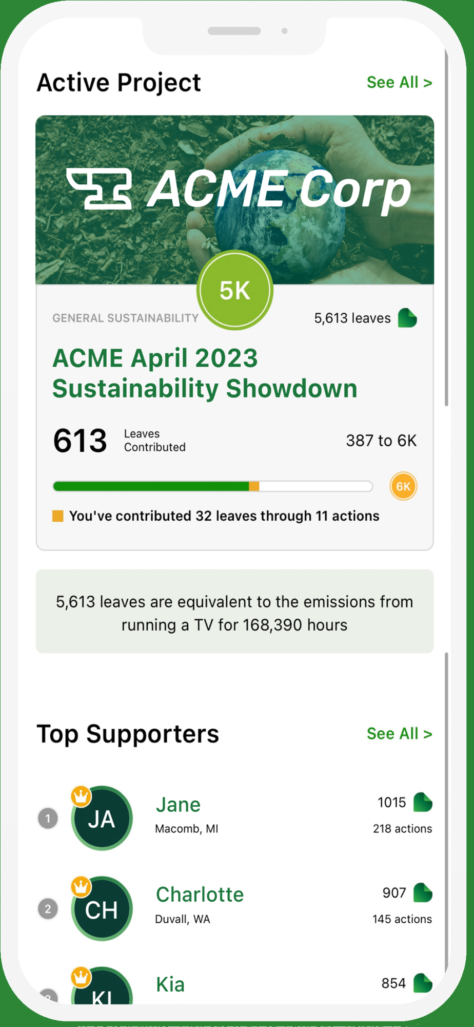 Each action you complete earns “leaves” to collaborate and compete with others in the GetGreen community. When your leaves add up, GetGreen turns those leaves into action by partnering with climate-focused organizations that provide support for certified carbon removal projects around the world and in your community.