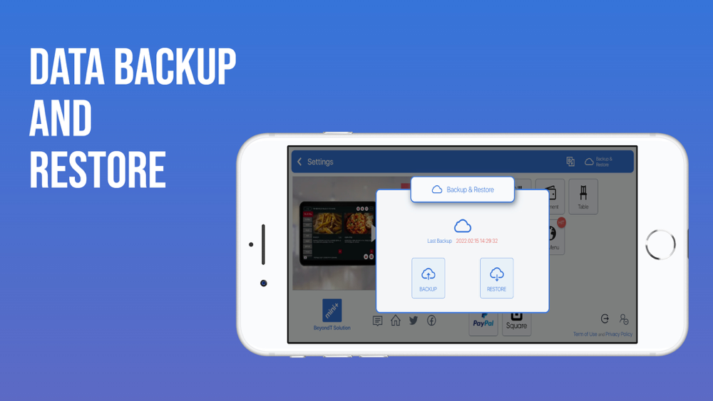 - Printer connection (receipt, kitchen)