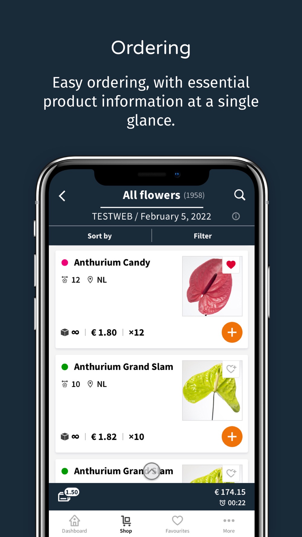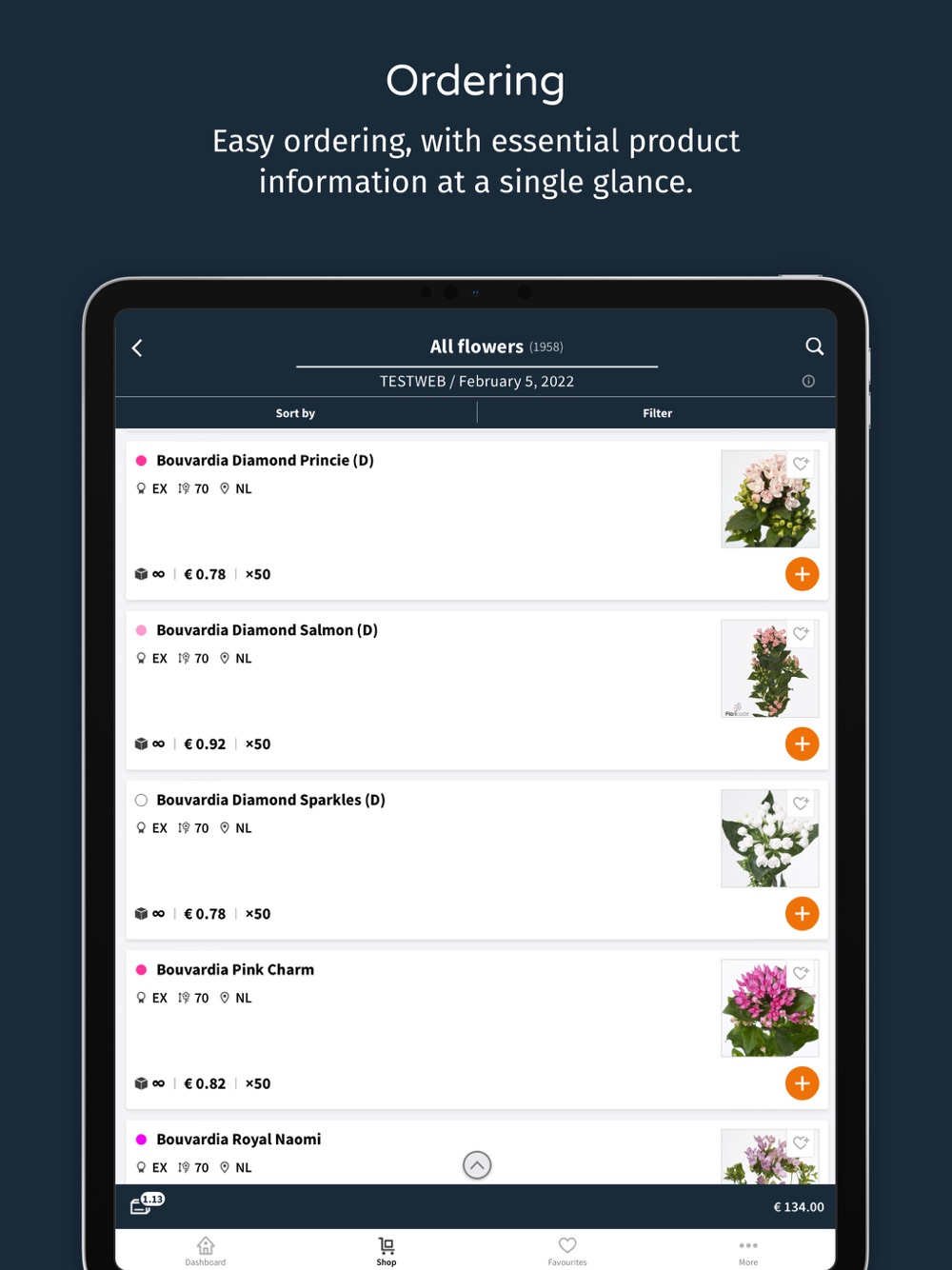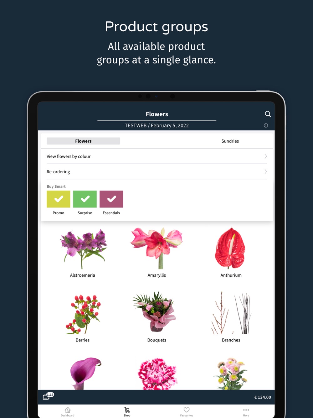 With the Flying Dutch Flowers app for phone as well as tablet, you always have direct access to a wide selection of daily fresh products. You can also view orders, top up or create new orders from any location: on the road, from your holiday destination, the shop, or from the comforts of your own home. The Flying Dutch Flowers app offers everything wholesale companies need for quick and easy stock management.