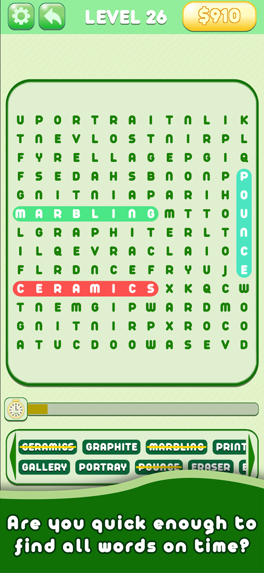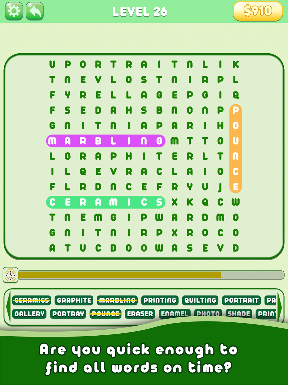 Word Pursue: Time Trial is a classic game on word search puzzles, combining the best features of word find, word line, anagrams, and crossword puzzles and adding a time limit to complete them.