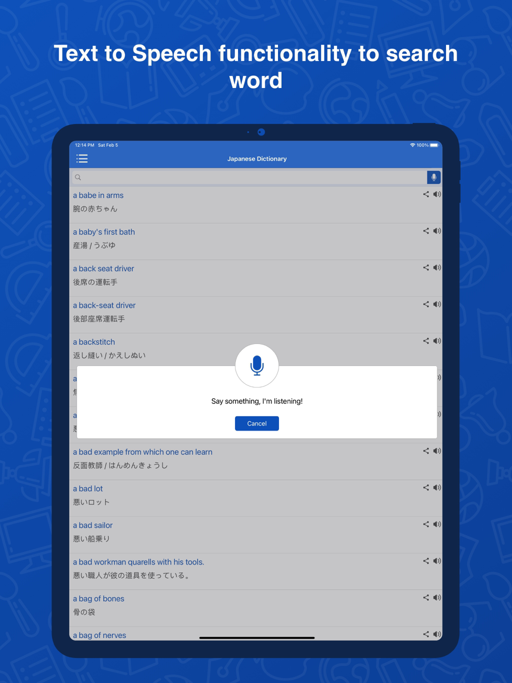 2- In Japanese Dictionary: Translator app, Users can search the word by their voice and read word meaning in both Japanese and English.