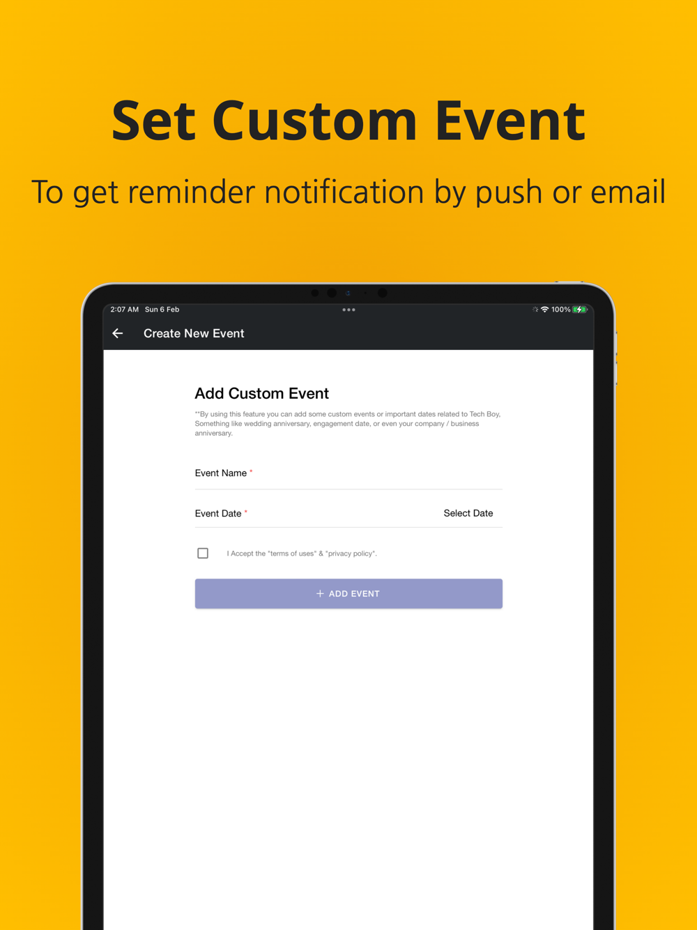 Currently, we are providing event reminders notifications through Emails, and push notifications.