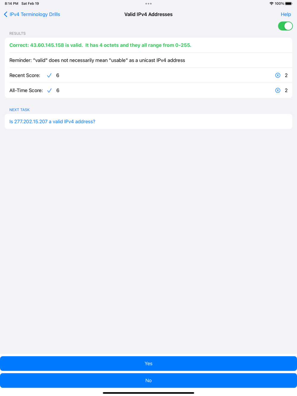 You may try each training drill for free 20 times. After that you may try the other drills or purchase a permanent unlock of all training drills for a low price (see in-app purchases for the "forever full-unlock" price in your region). One purchase unlocks all versions of the app (iOS, iPadOS, and MacOS). CIDR Trainer uses iCloud to sync drill progress between your devices.
