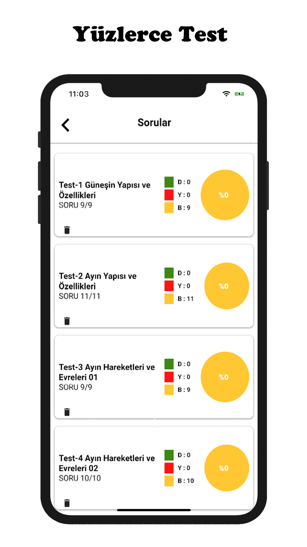 Uygulamamızda bütün konular ve sorular yeni müfredata göre hazırlanmıştır.