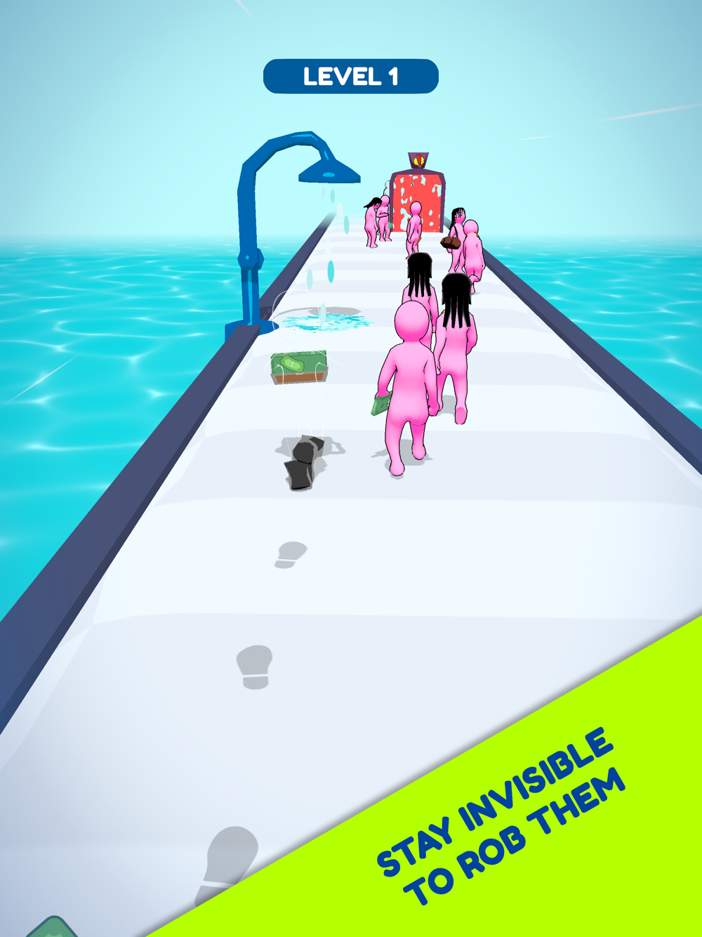 Stay invisible to rob the stickmen and collect as more money as possible in your safe.