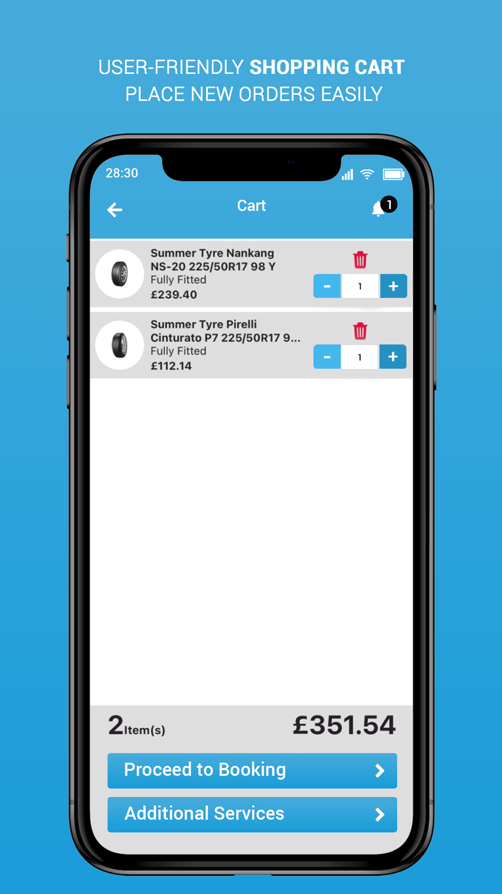 Track your MOT certificate and deadlines coming your way in one click. Get pop-up notifications for your MOT appointments and up-gradation of the vehicle. Explore through the app and find the ideal tyres from several tyre brands available for vehicles of all types in different sizes. Simply add the product or the service you wish to get in the service cart and get an overview of the prices then and there. You can also review your cart, service or product history and track other services through this app. Download the app now to avail exciting offers and great deals waiting for you in the MOT & Service Centre app.
